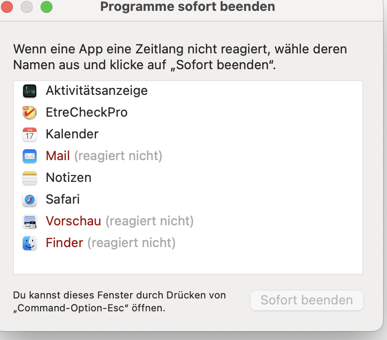 - bei Neustart: dauert bis zu 30 Minuten bis Finder erscheint ( andere Apps funktionieren)