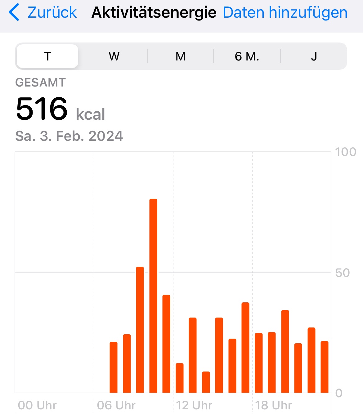 Meine Apple Watch zeigt „Ruhe Energie“ von ca. 2.100 Kalorien an und anschließend Aktivitätsenergie 400-500 Kalorien.