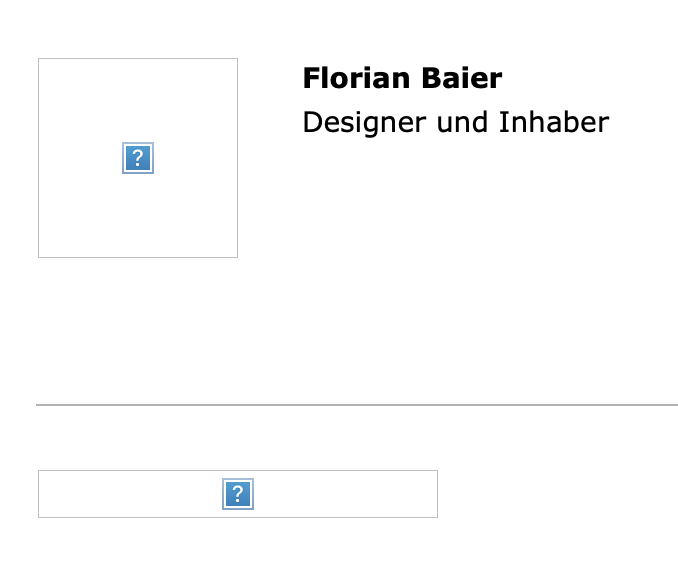 Ich habe mir eine E-Mail Signatur mit einem kostenlosen Signatur-Tool erstellt (Signature Hound). Im letzten Jahr hat das auch alles lange Zeit funktioniert und ich hatte mit der Darstellung der Bilder überhaupt keine Schwierigkeiten. Seit einigen Monaten werden, in meiner bislang unveränderten Signatur, das Bild und mein Logo nicht mehr angezeigt, bzw. wird an der gleichen Stelle ein Fragezeichen ausgegeben.