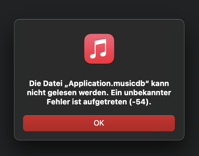 Musik zeigt seit kurzem den Fehler -54