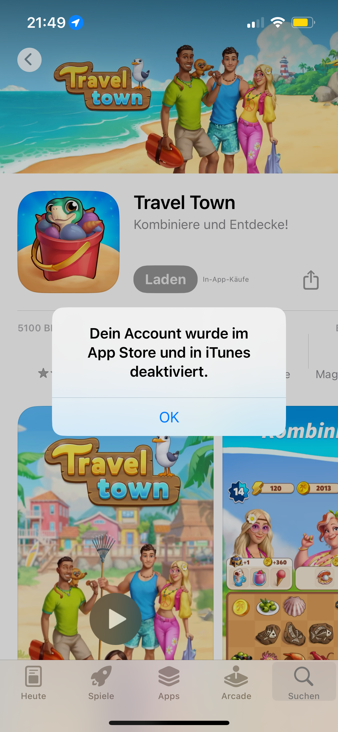 Dein Account wurde im App Store und im iTunes deaktiviert. (Bei jeder App )