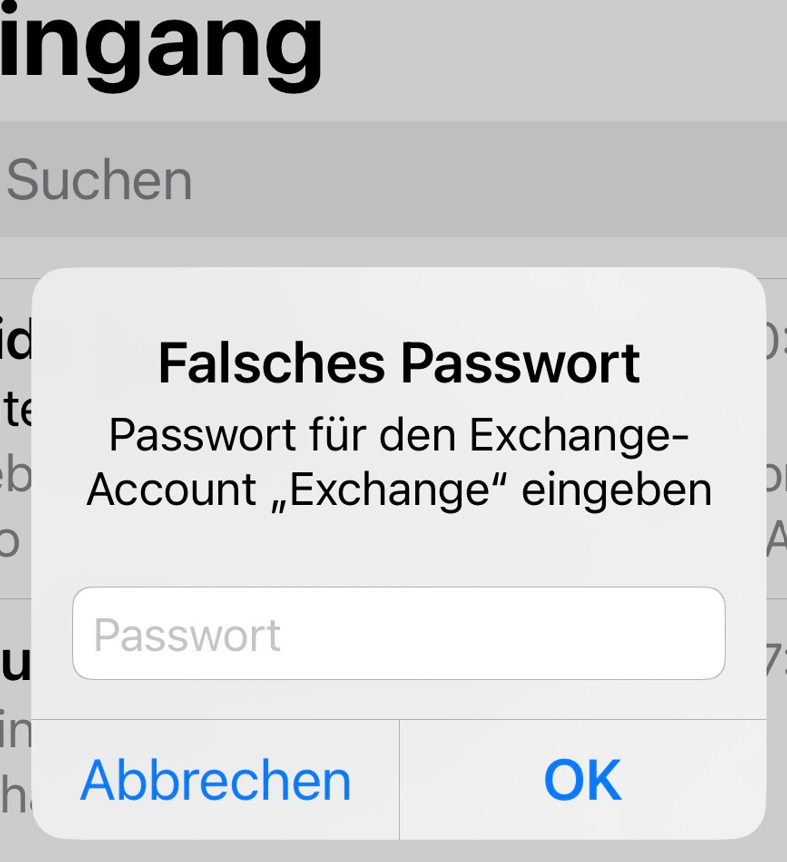 Hallo. Ich bekomme auf meinem iphone 15 (iOS 17.2.1) beim Abrufen der Mails ständig die Meldung: Falsches Passwort für den Exchange-Account. Ich habe keine Passwort-Änderung vorgenommen und trotzdem wird weder das eigentlich gültige Passwort noch ein anderes (früheres) Passwort akzeptiert. Ich kann zwar die Mails ansehen. Aber vorher muss ich die Warnmeldung gefühlt 100x wegdrücken mit "abbrechen". Was kann ich machen?