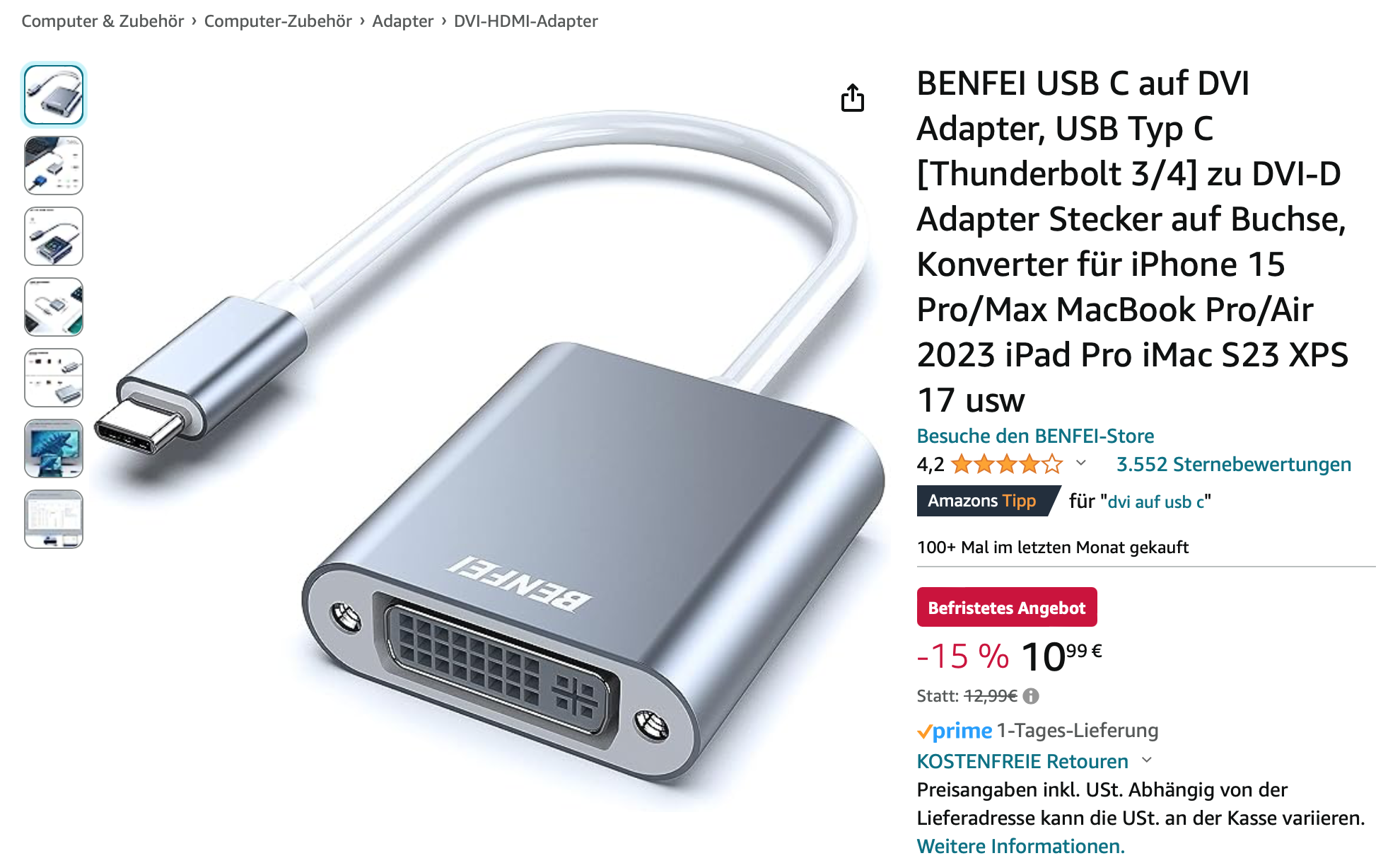 Leider hat mein Display nur einen DVI Stecker (den mit den vielen Stiften). Allerdings habe ich noch einen alten Adapter, Mini DisplayPort auf DVI. Kann es funktionieren, wenn man 2 Adapter hintereinander schaltet?
