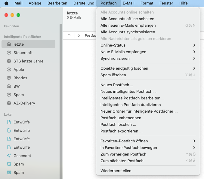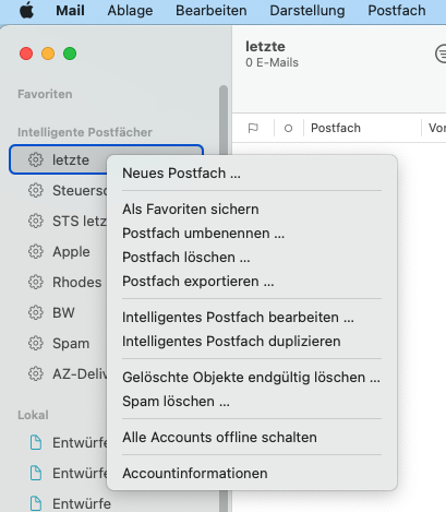 danke für die Tipps, aber leider funktionieren die von dir beschriebenen Schritte nicht. Ich habe wie in anderen Foren empfohlen den Index neu aufbauen lassen (unter ~/Library/Mail/V10/MailData die Dateien Envelope*.* entfernt und Mail neu gestartet) mit dem Effekt, dass das intelligente Postfach "letzte" jetzt leer ist!