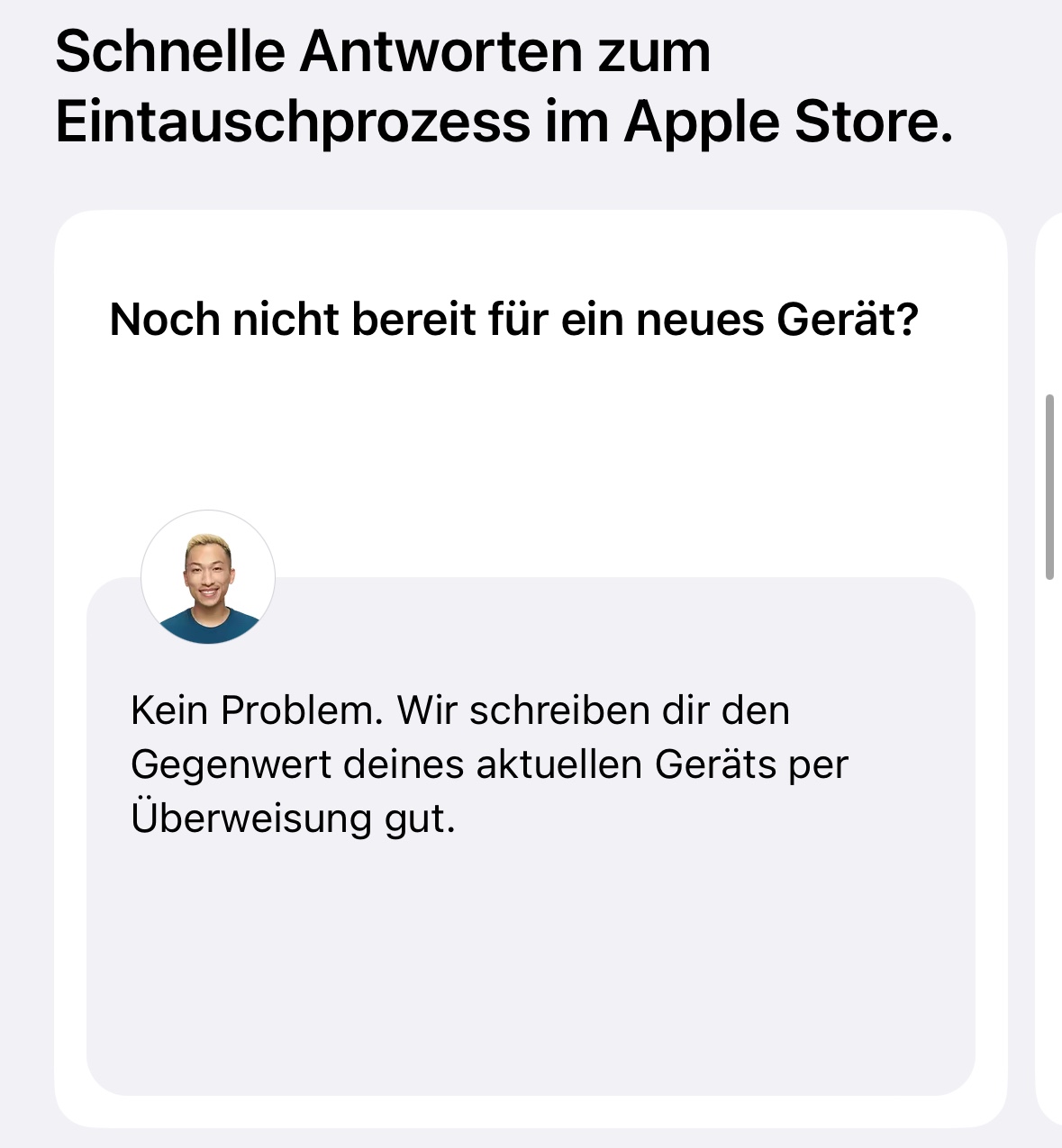Ich habe meine Watch 7 im Store per Trade In veräußert und lediglich einen Gutschein erhalten.