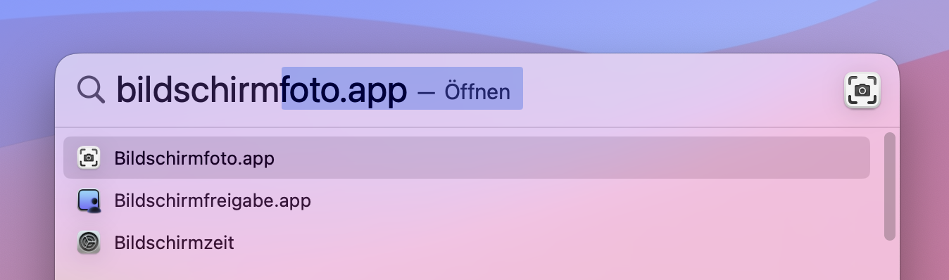 Das die Bildschirmfoto App nicht in meinem Dock zu sehen ist, liegt daran, dass ich diese wenn dann per Spotlight-Suche (⌘ + Leertaste) öffne. Ich hab die App also nicht in meinem Dock fixiert.