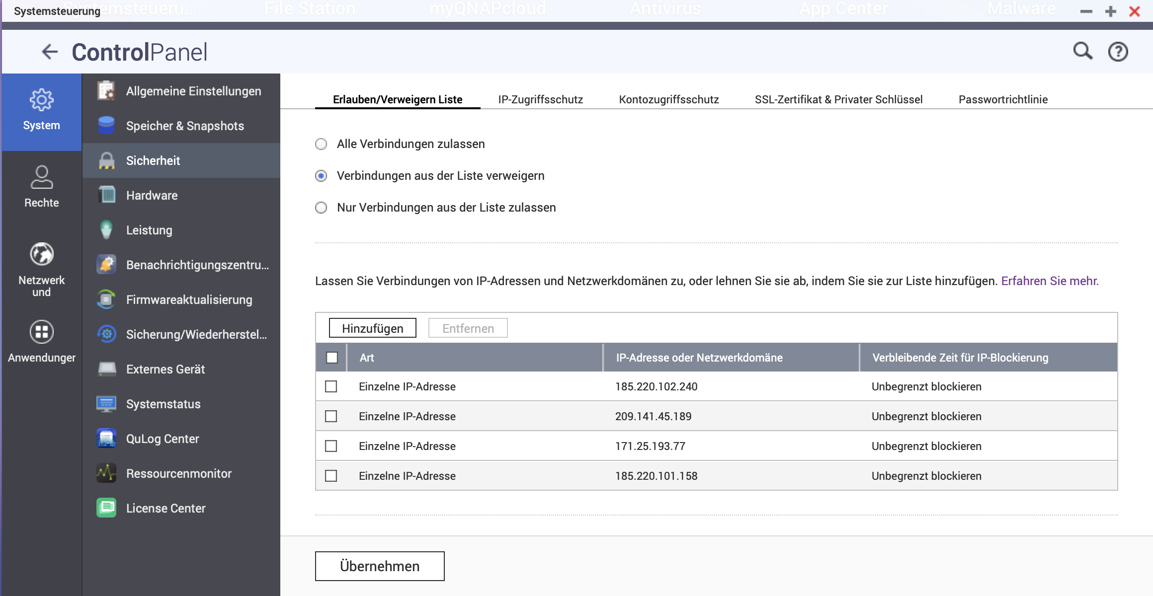 Auf den Macs wird das NAS von der Qnap Finder Software gefunden, kann aber auch nicht aufgerufen werden. Im Finder sichtbar, kann aber nicht verbunden werden.