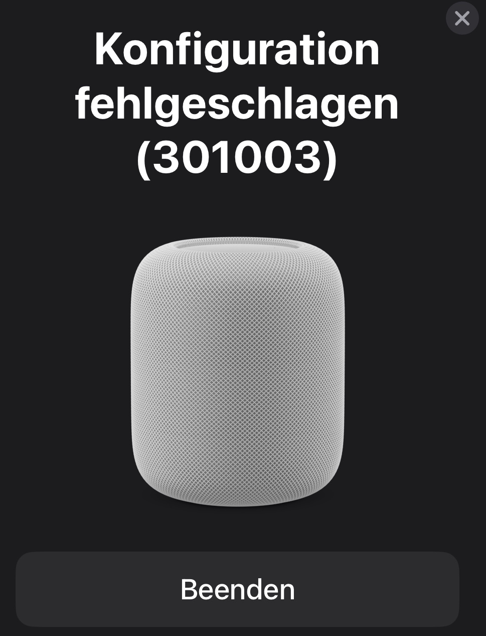 HomePod Konfiguration fehlgeschlagen (301003)