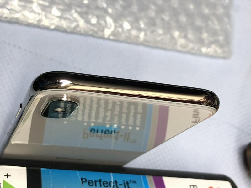 Heute haben wir ein X mit Displayschaden. Und ich dachte mir, da kann man doch auch den zerkratzen Rahmen wieder schön machen. Die Technik funktioniert bei allen Modellen aus nackten Metall, die glänzend sind.