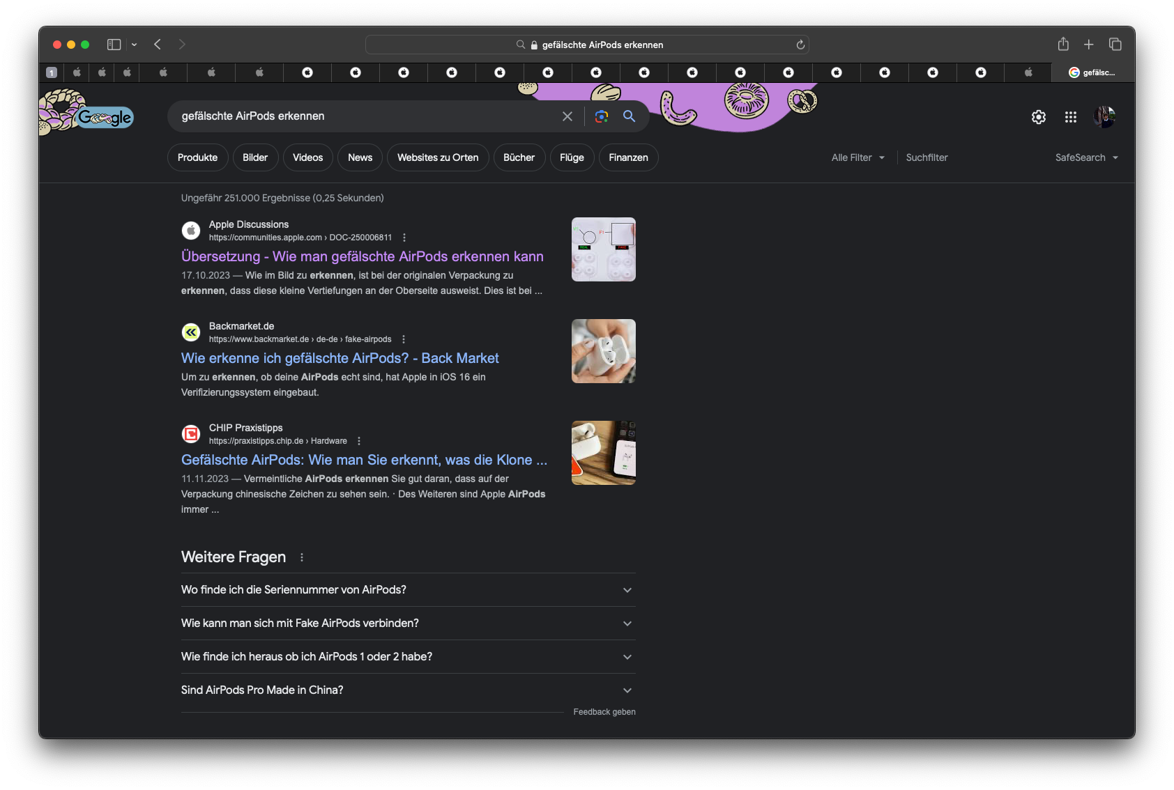 Eine lange Zeit lang befand sich ein Benutzer-Tipp von mir unter den Top Ergebnissen bei Google, deswegen auch die hohen Aufrufzahlen: Wie man gefälschte AirPods erkennen kann - Apple Community. Dann habe ich den Namen ändern lassen und vorerst ist dieser nun auf der ersten Seite bei Google gar nicht mehr zu finden. Vielleicht kommt er eines Tages wieder, es gibt also auf jeden Fall Fälle wo unsere Tipps dort landen.