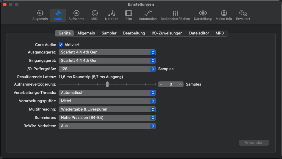 Die System- als auch die Logic-Einstellungen sehen erstmal korrekt aus, sofern du in Logic die Input Kanäle 3+4 aufnehmen willst. Wenn du magst kannst du auch einen Screenshot deines Mixers der betreffenden Spur posten, falls der nächste Tip auch nicht zum Erfolg führt.