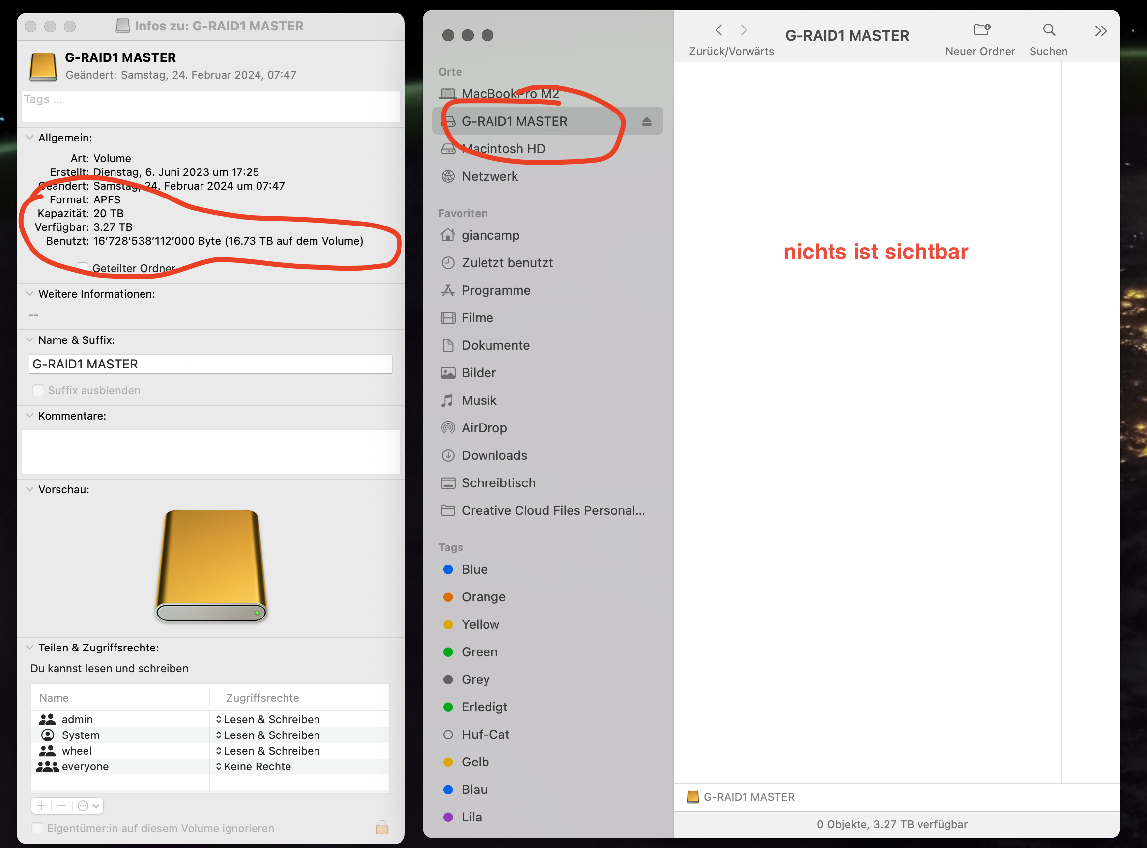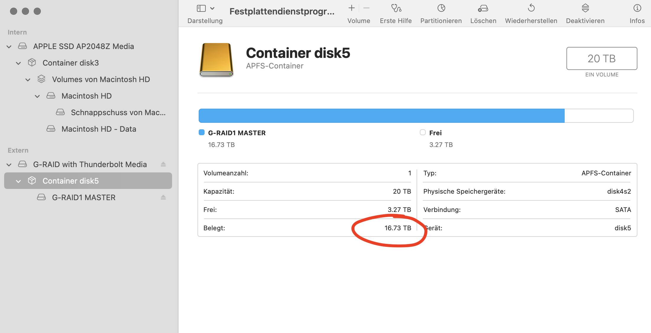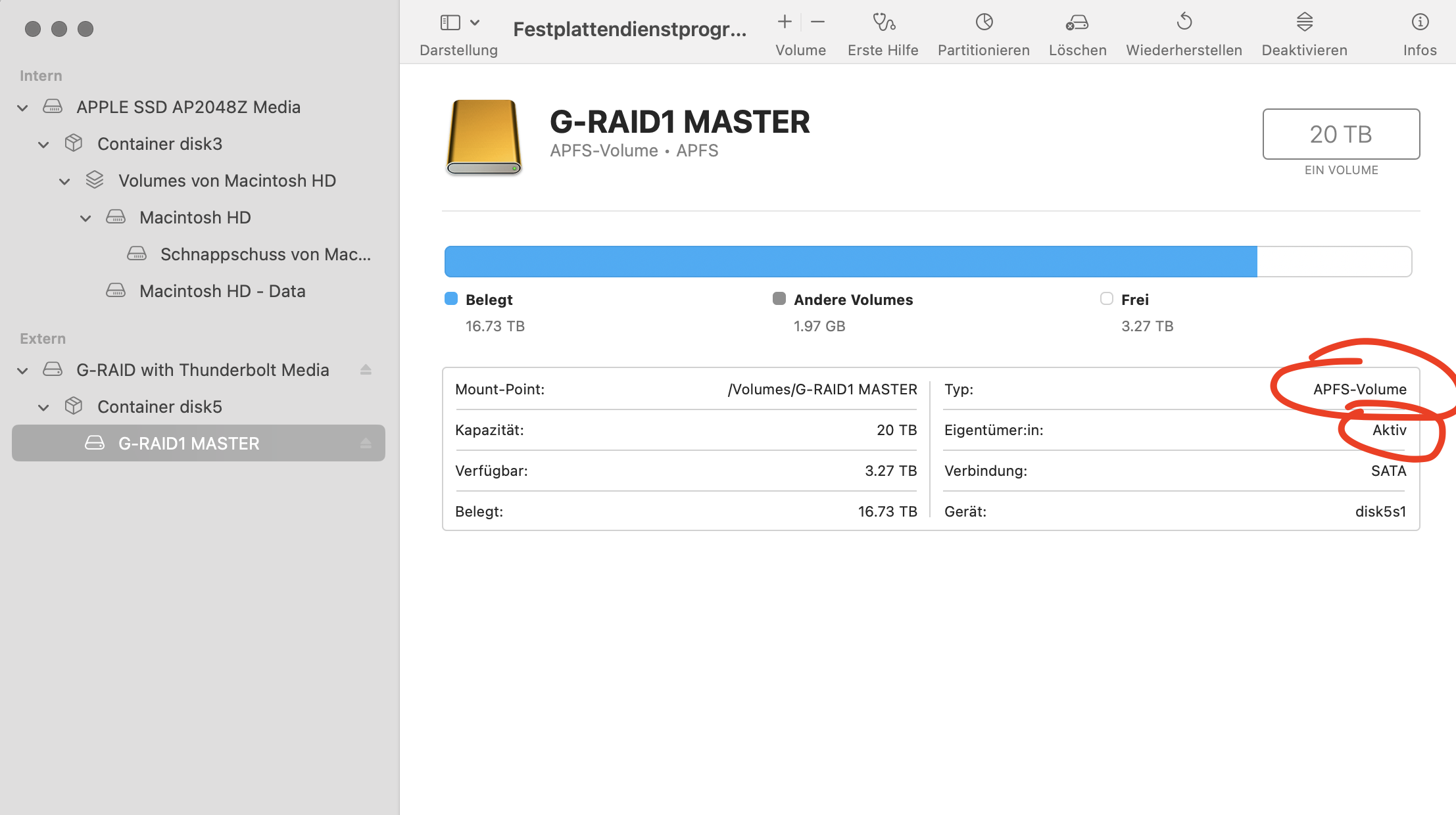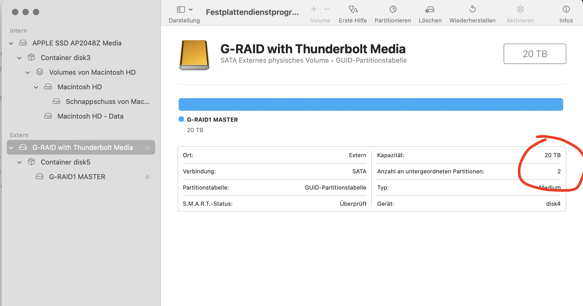 Ich habe das selbe G-Raid aber mit 2 x 12 TB Platten, was eigentlich nichts zur Sache tun sollte.