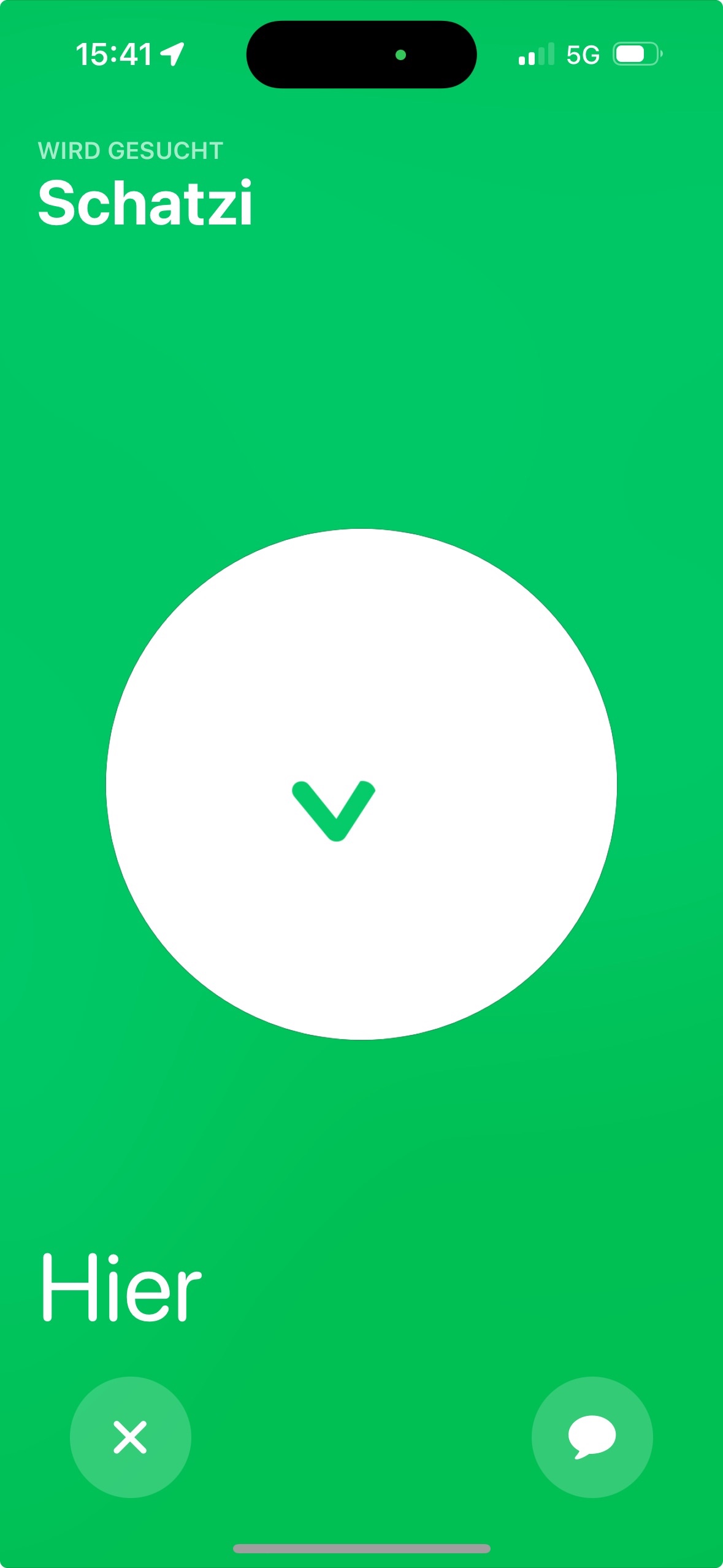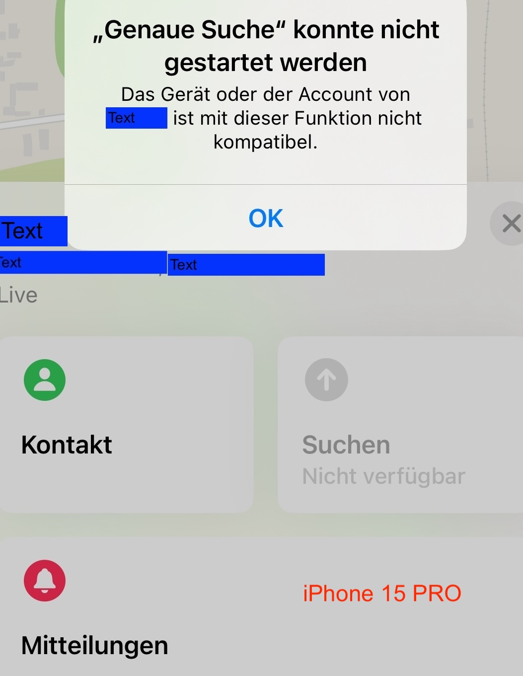 Ich habe ein iPhone 15 Pro. Wenn ich bei "Wo ist" meine Frau anklicke sollte eigentlich unter dem Standort auf der rechten Seite das Feld "Suchen in der Nähe" kommen um zB in einer Menschenmenge die Person schnell zu finden.