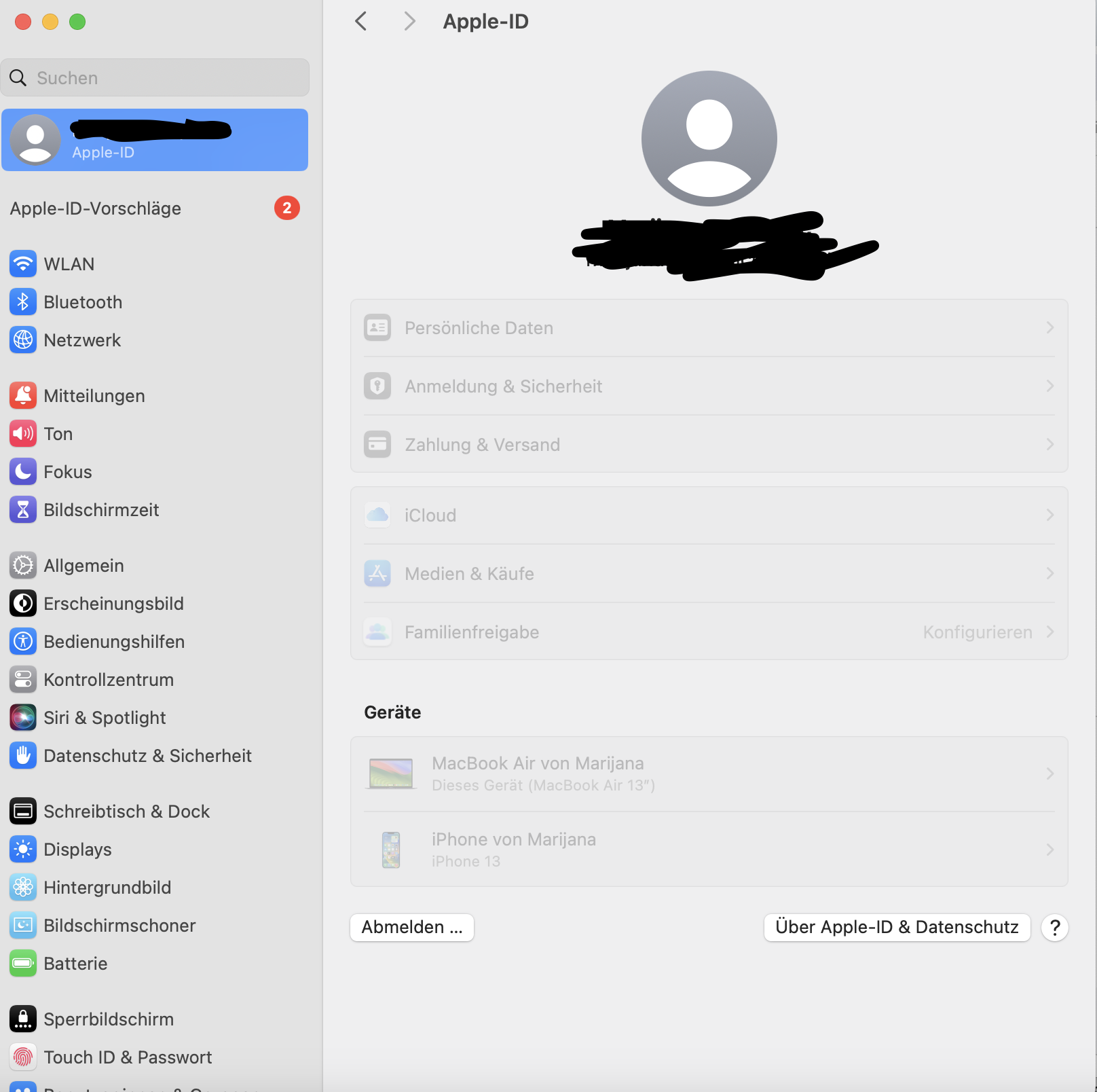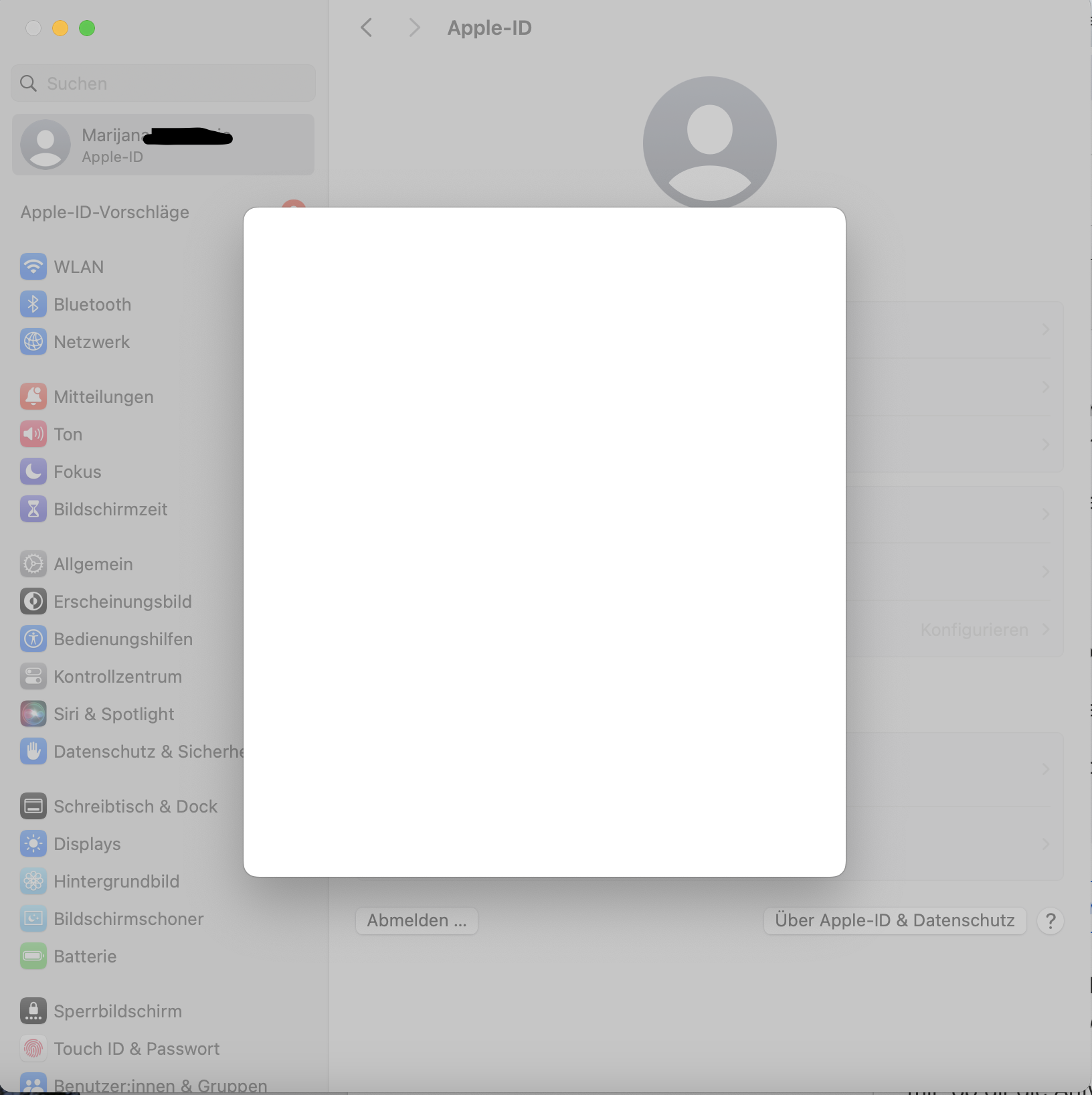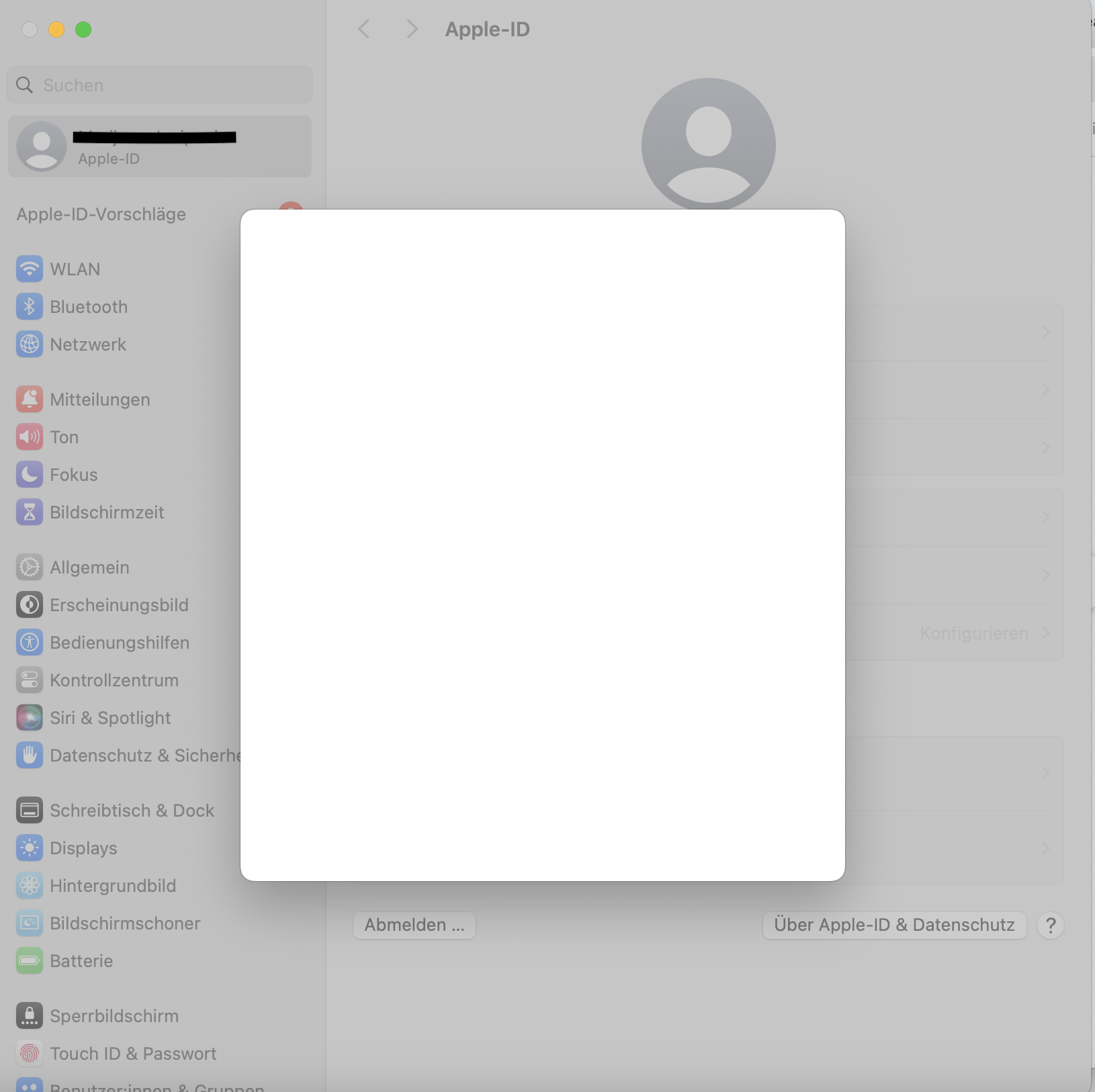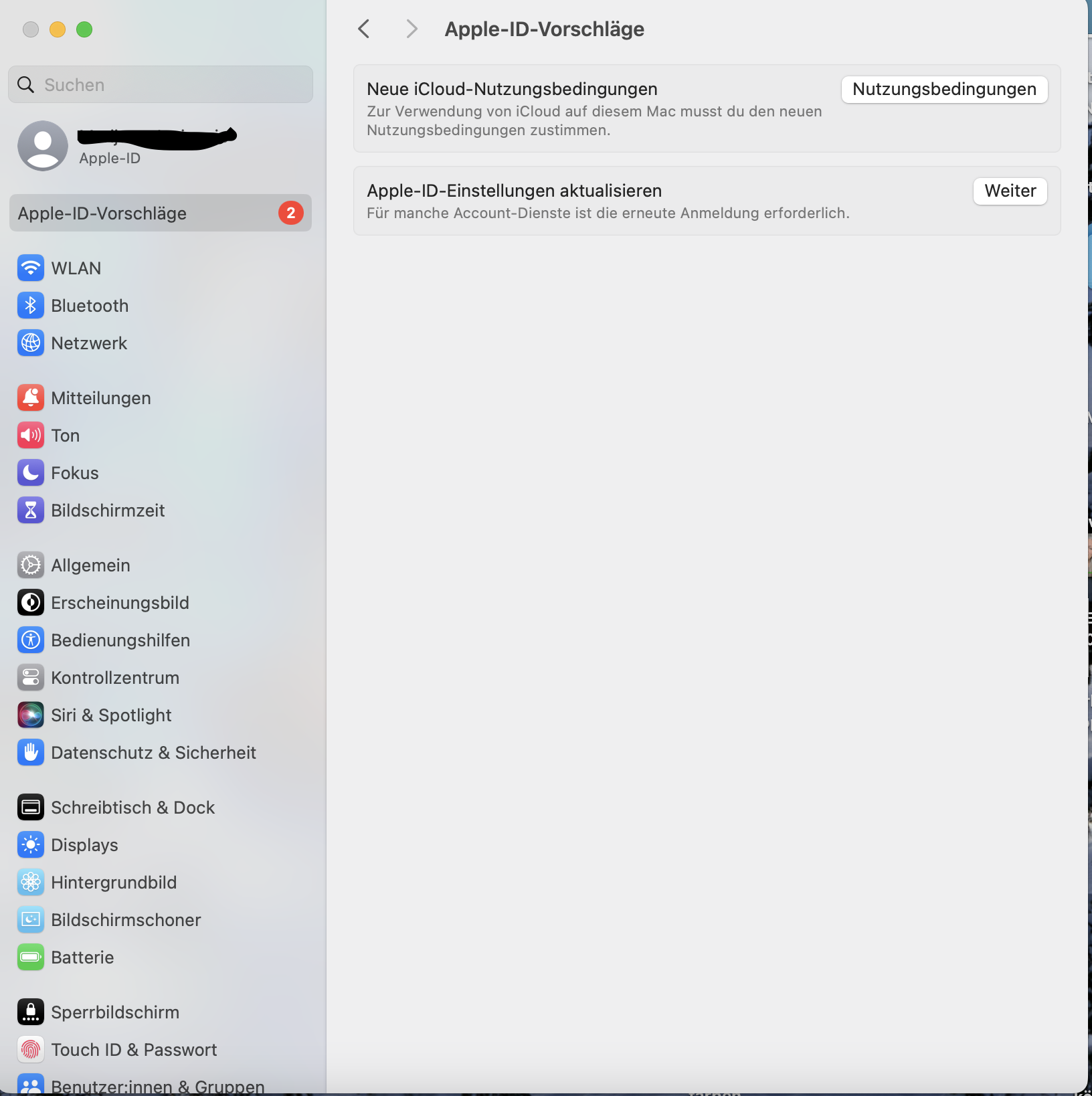 Ich kann aber nichts machen. Anfänglich war es so, dass ich, wenn ich draufklickte, zur Apple-ID in der Systemsteuerung kam, aber diese nicht reagierte.