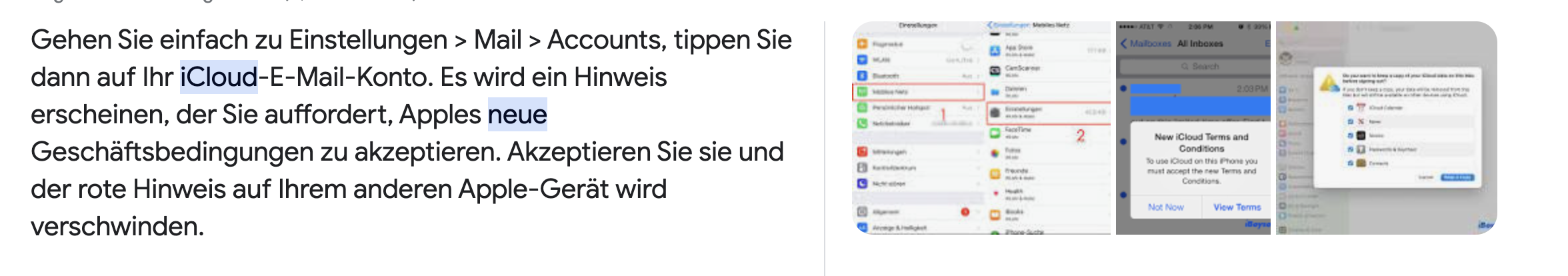 Neuen iCloud-Nutzungsbedingungen kann nicht zugestimmt werden und Apple-ID ist eingefroren und grau