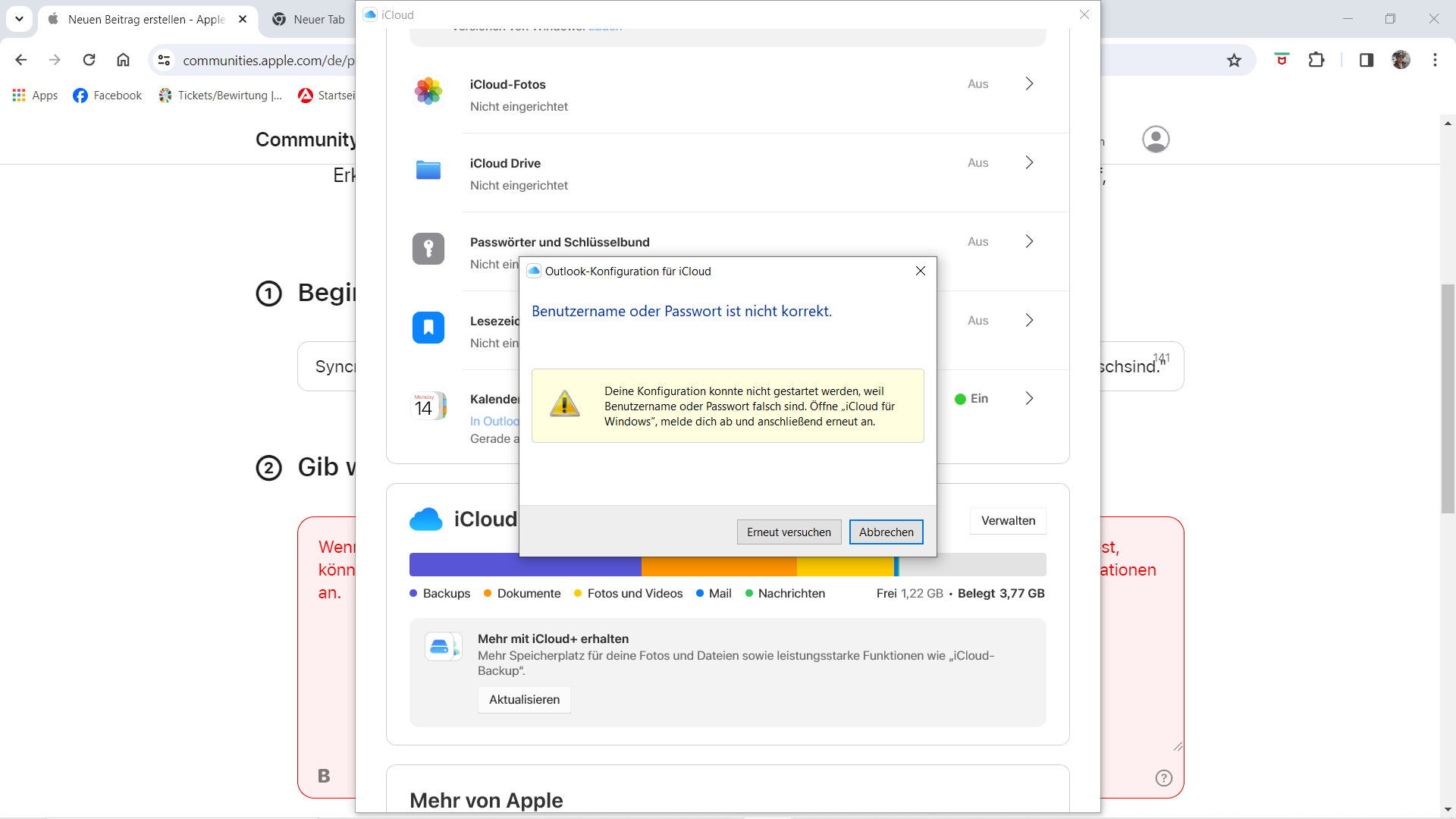Wenn du die Fehlermeldung "Die iCloud-Konfiguration konnte nicht gestartet werden, weil Benutzername oder Passwort falsch sind" erhältst, gibt es mehrere Schritte, die du unternehmen kannst, um das Problem zu lösen: