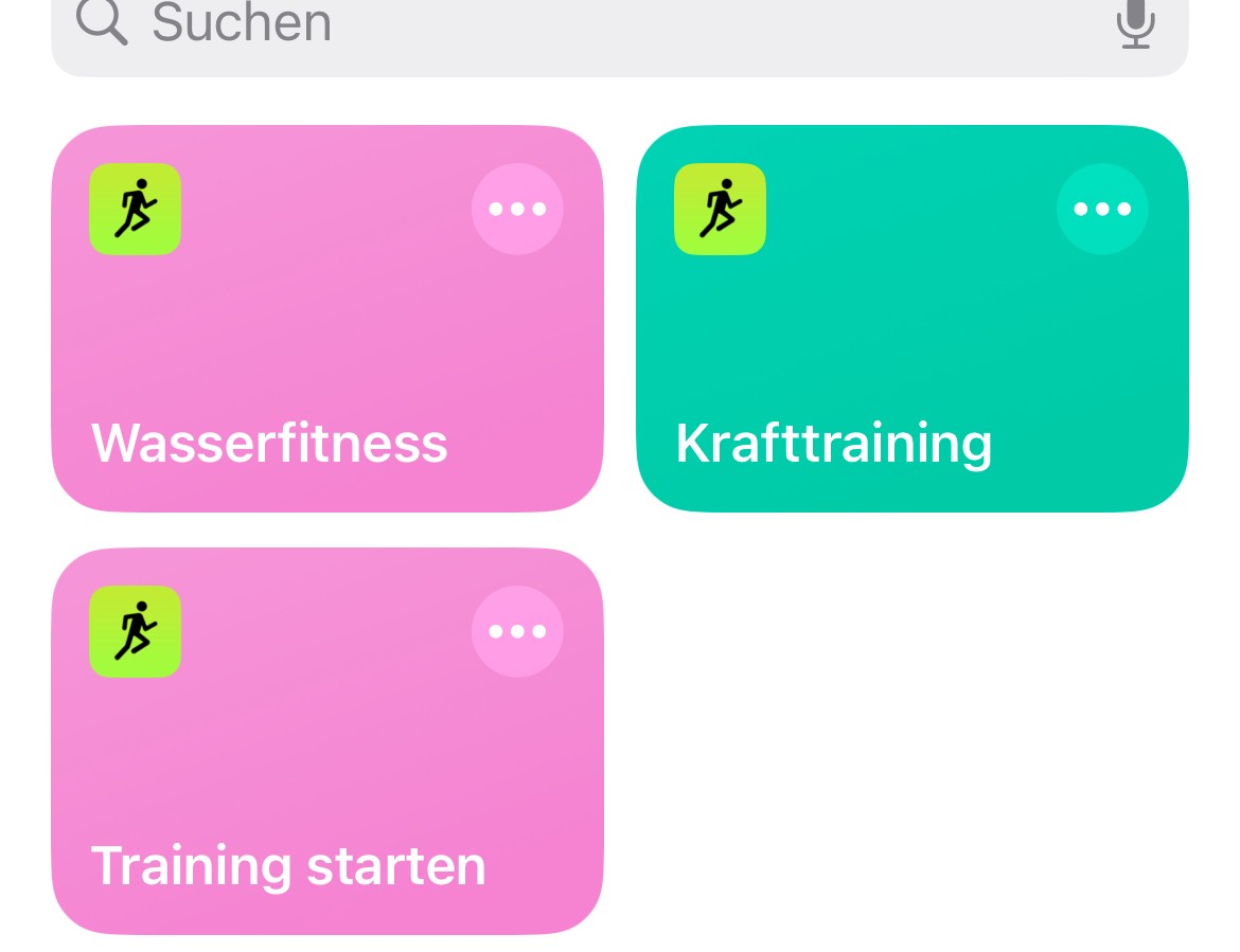 In der Kurzbefehl App habe ich ein paar Trainings angelegt. Diese sind in der App Watch dann leider nicht auswählbar. Es ist nur die Kurzbefehle zu sehen und nicht der Grund "Mehr..".