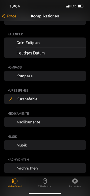 Kurzbefehle sind in der Watch App Series 5 nicht auswählbar
