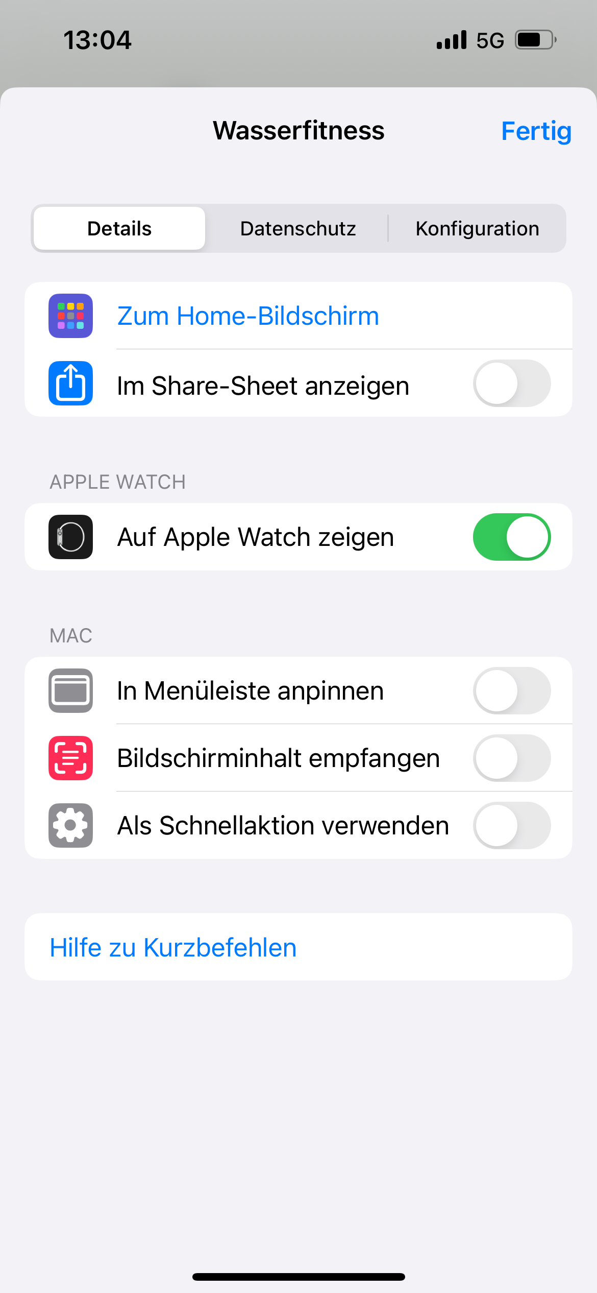 Wenn Kurzbefehl in App Watch aktiviert ist , erscheint auf der Watch zwar der Kurzbefehl, dieser geht aber nicht auf das Training.