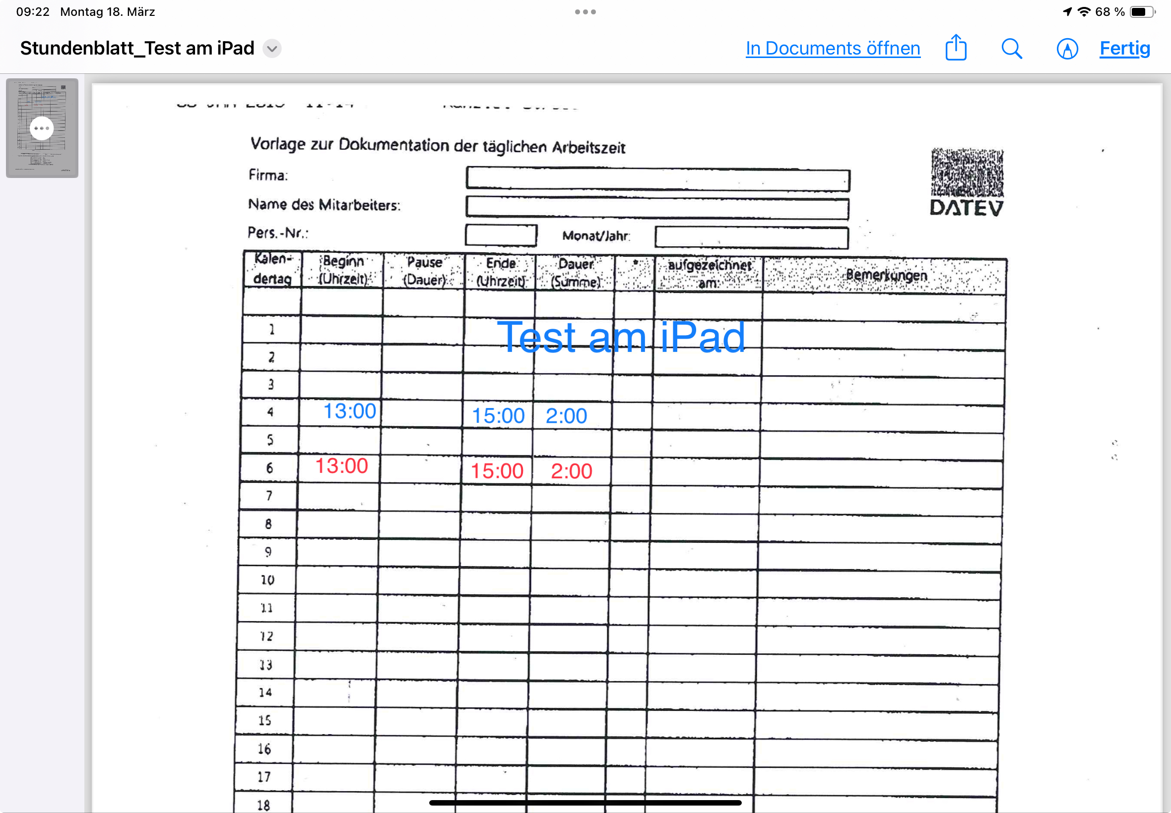 Bild 2A das gleiche Formular auf dem iPad erstellt