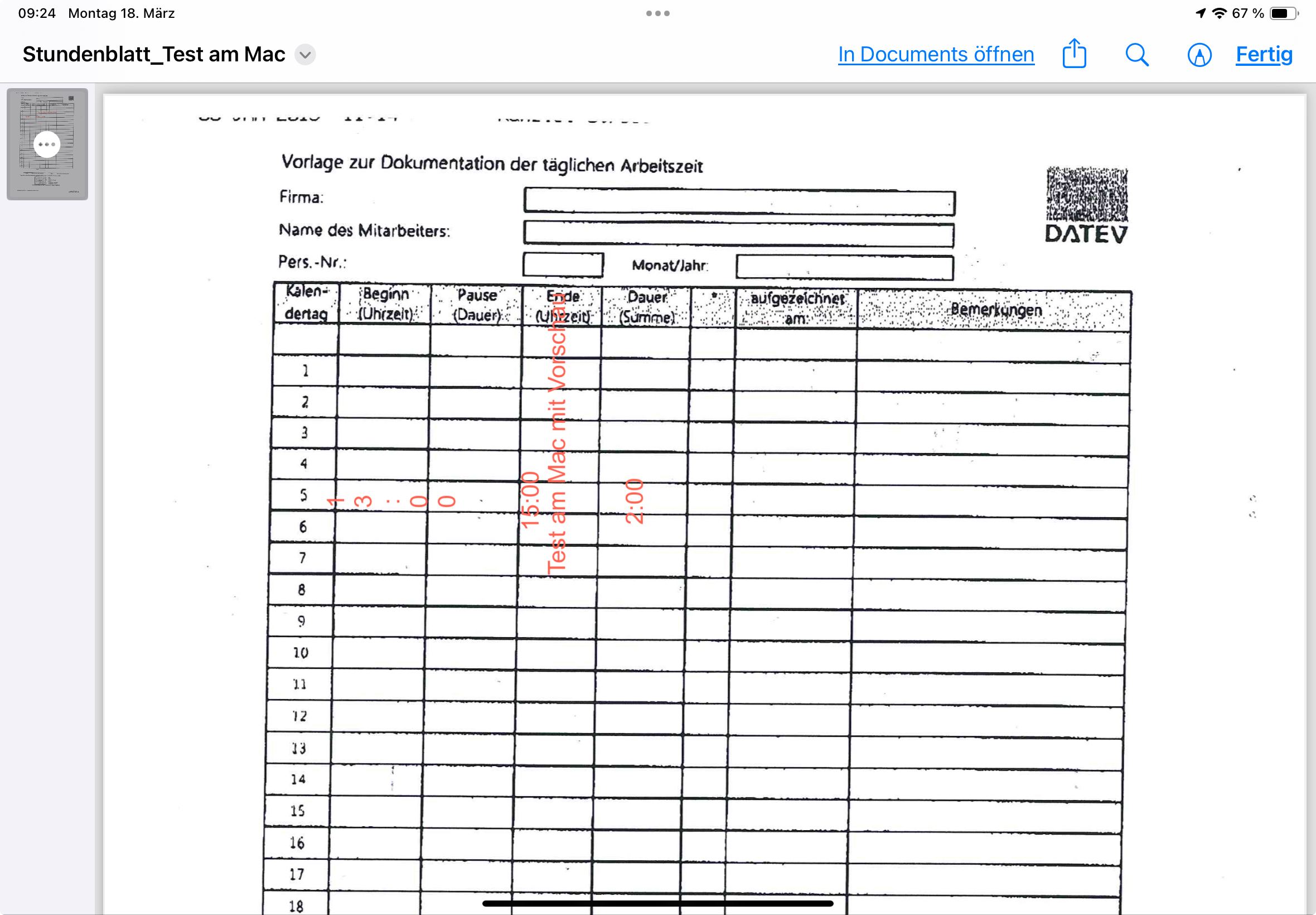 Das Formular befindet sich auf iCloud Drive.