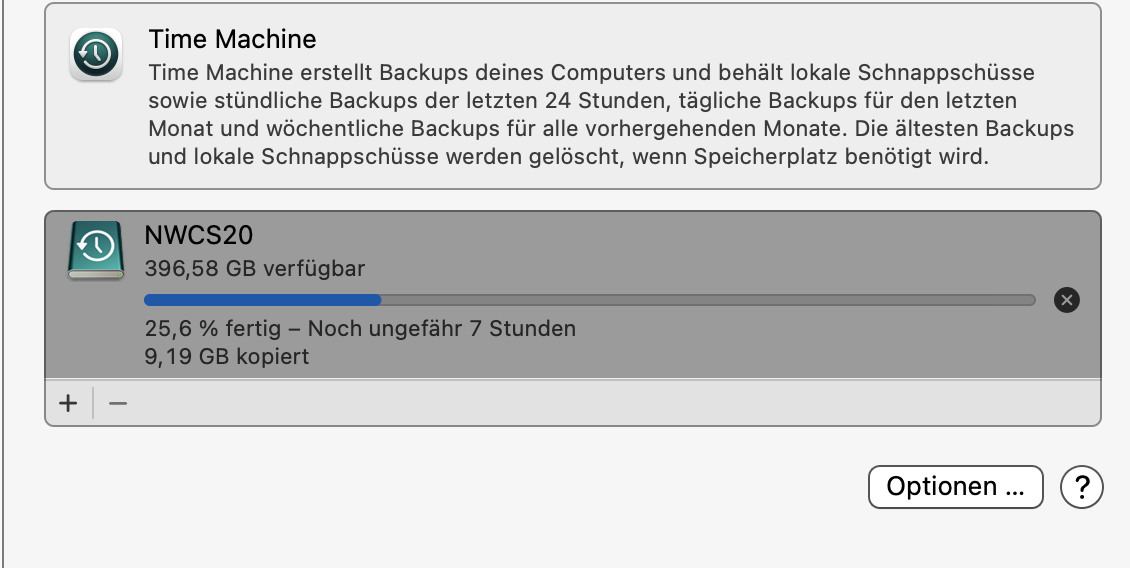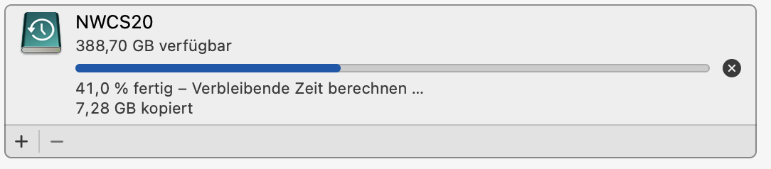 Und wieso hast du abgebrochen und wobei benötigst du nun meine Hilfe? Bei der Erstellung eines Backups auf der TimeMachine oder der externen NWCS20 Festplatte?
