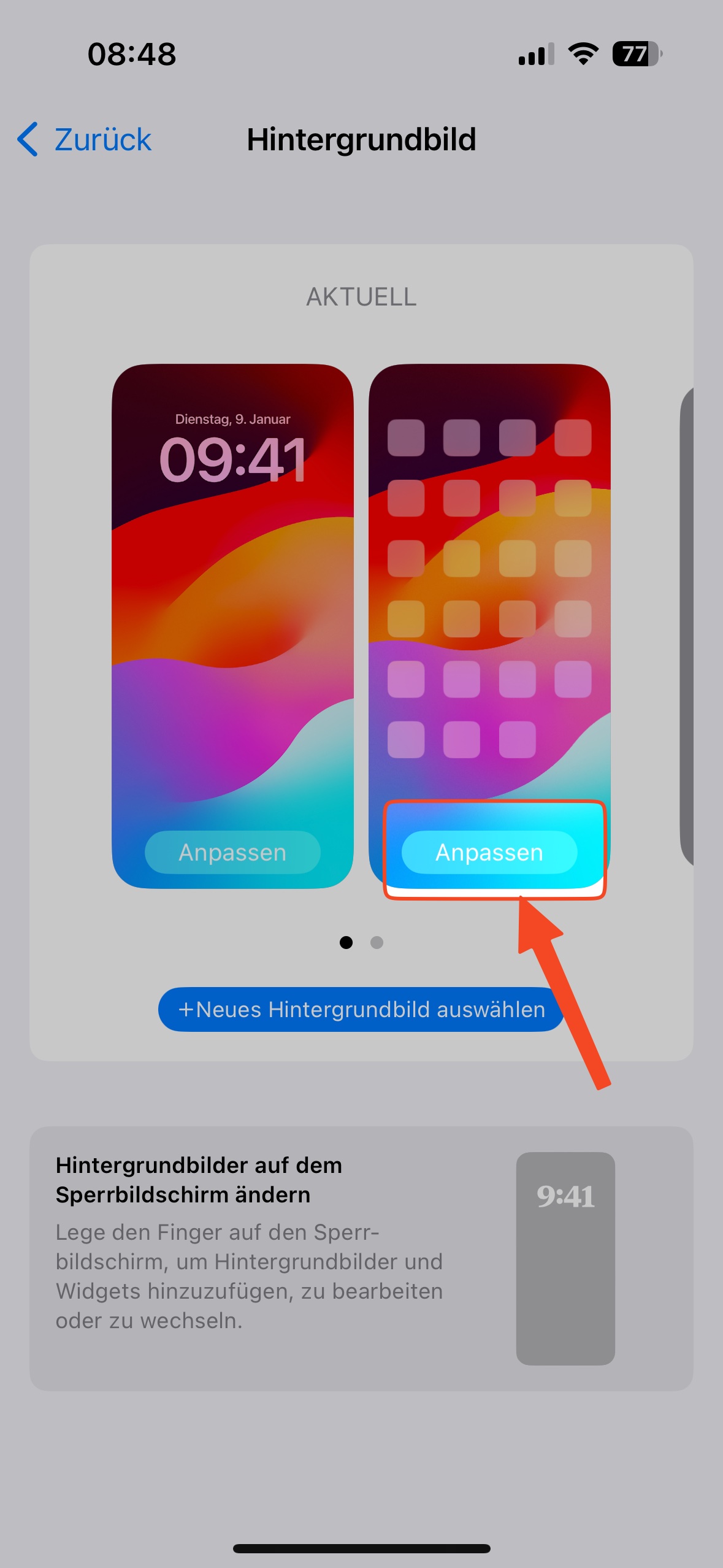 Ich habe soeben mein Hintergrundbild beim iPhone 15 gewechselt. Jetzt ist es unscharf. Das Sperrbild hingegen ist scharf. Was kann ich tun? Herzlichen Dank
