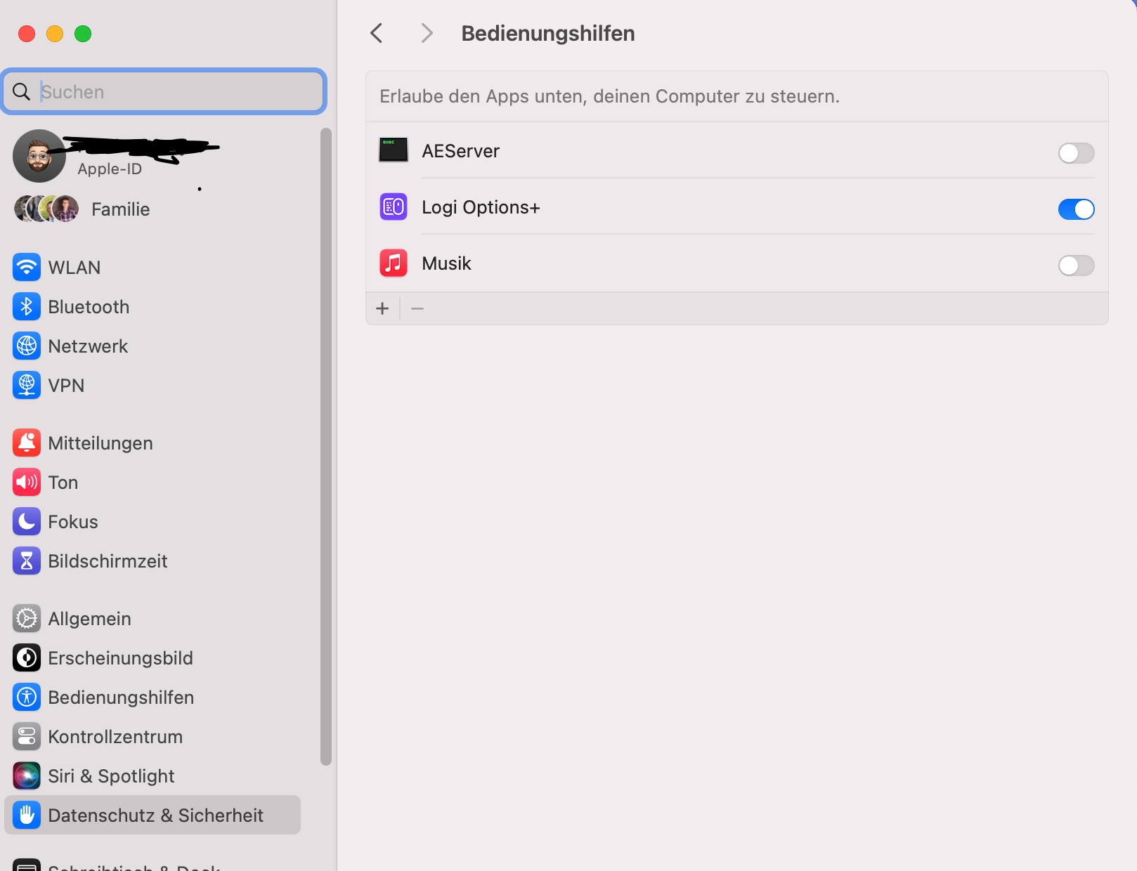 Ich habe mir für mein Macbook 2020 M1 vor kurzen eine Logitech MX Master 3s for Mac gekauft. Über Bluetooth wird die Verbindung wunderbar hergestellt, nur kann man auf diese Weise die Zusatztasten nicht konfigurieren. Dies geht nur, wenn man die Maus über Options+ von Logitech verbindet. Die App wird ohne Fehler installiert, die Freigabe über Einstellungen wurde erlaubt, nur kommt die App nie über den Startbildschirm hinaus weiter (siehe Scrrenshot)