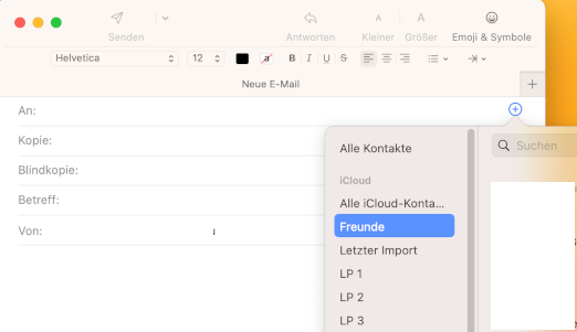 Urplötzlich lassen sich bei Mail-An (+) keine Gruppenadressen, z.b.Freunde (8), mehr hinzufügen, nur noch einzeln.
