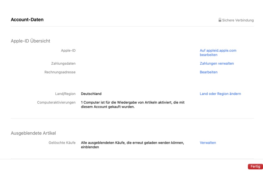 - Klicke oben auf der Seite mit den Accountinformationen neben „Computerautorisierungen“ auf „Alle deautorisieren“.