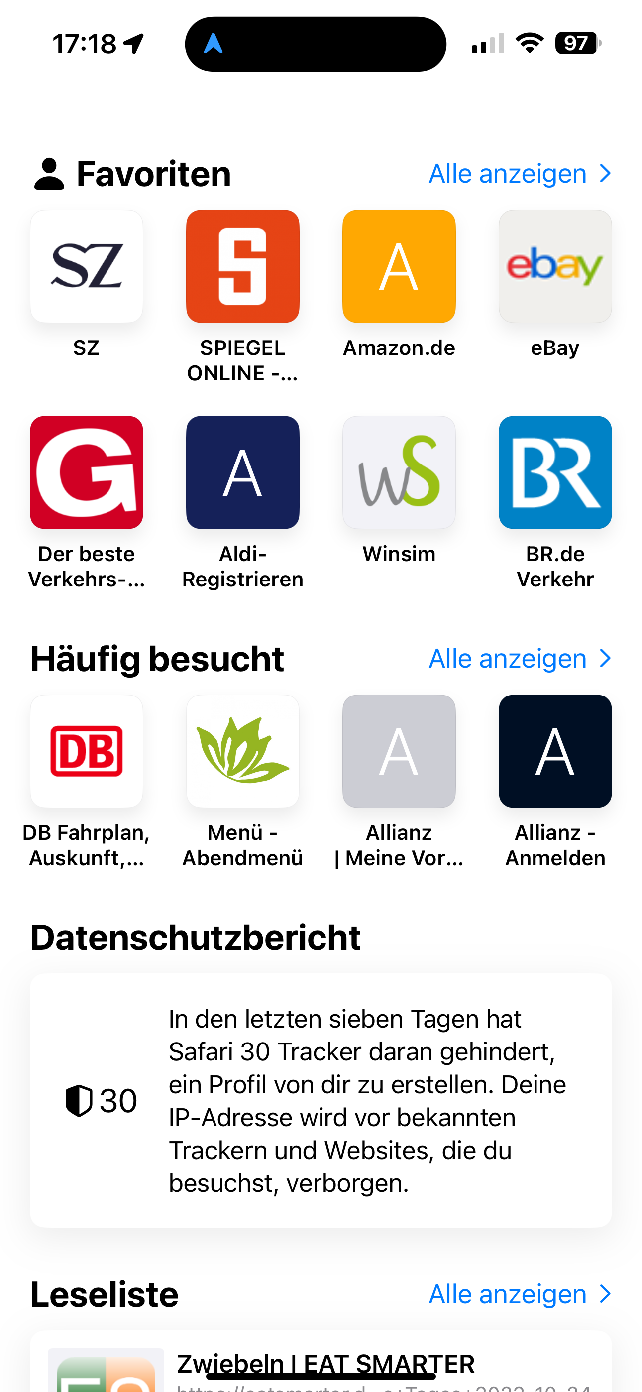 Normalerweise schiebst du eine geöffnete Webseite nach oben, dann erscheint die Adressleiste. Genau das passiert bei mir seit heute nicht mehr. im folgenden siehst du die seite, die geöffnet wird, wenn ich auf das „+“ gehe.