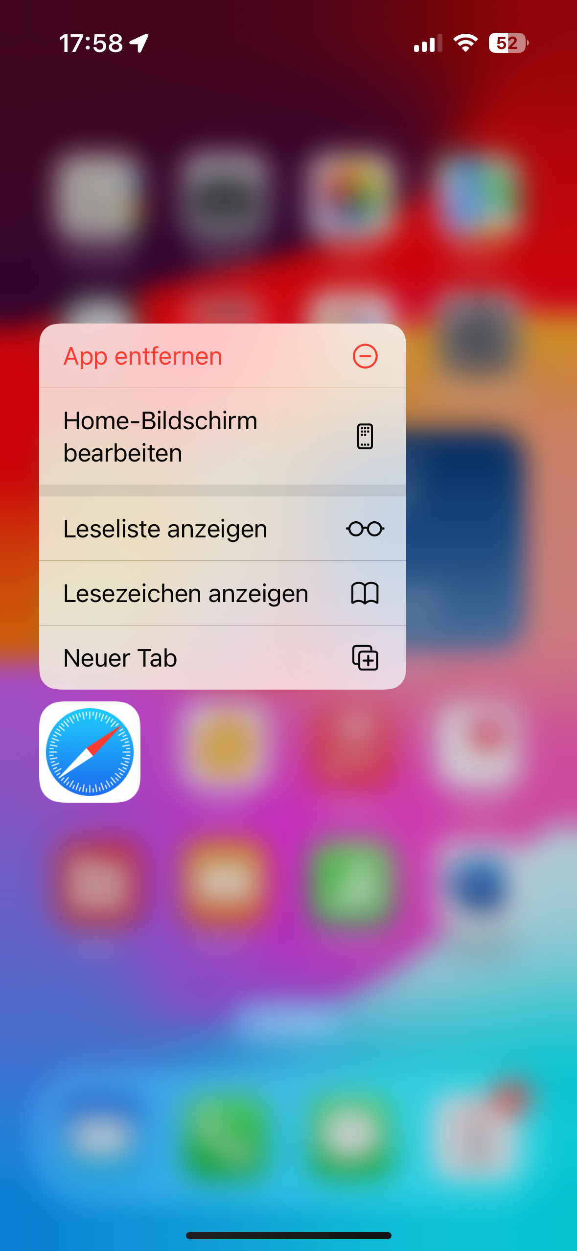 Hallo ich öffne safari gehe auf tabs drücke auf die drei striche dort sollte neuer privater tab stehen steht aber nicht da auch wenn ich länger am homebildschirm safari gedrückt halte kommt auch nicht neuer privater tab bei meine Freund funktioniert es.
