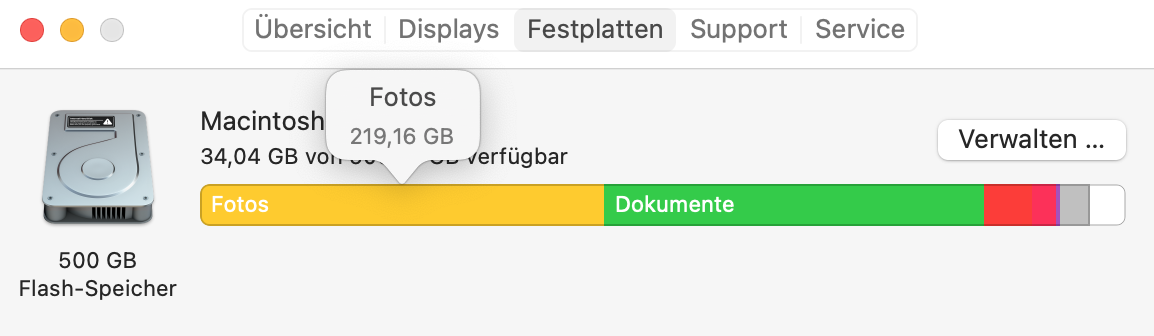 Diese Dokument erklärt, wir die Anzeige der Speicherbelegung zu lesen ist: Anzeigen des verfügbaren Speicherplatzes auf dem Mac in den Systeminformationen - Apple Support (DE)