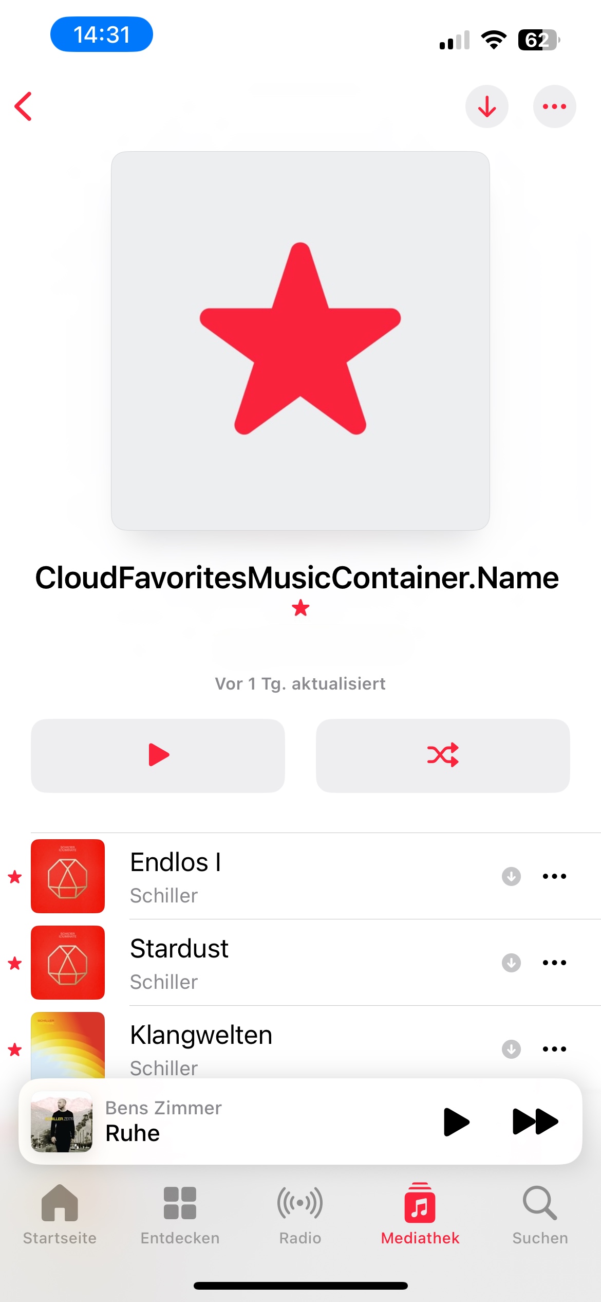 Seit gestern heißt meine Playlist für die mit Stern markierten Titel auf dem iPhone plötzlich „cloudfavoritesmusiccontainer.name“ (siehe Screenshot).