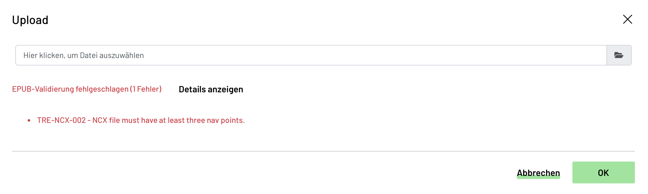 - Ich habe in Pages ein E-Book erstellt inkl Inhaltsverzeichnis, in Books funktioniert es prima. Beim Hochladen bei Tredition bekomme ich allerdings eine Fehlermeldung „TRE-NCX-002 - NCX file must have at least three nav points.“ Ich habe das Inhaltsverzeichnis ein mal manuell und ein mal automatisch erstellt (Links funktionieren bestens) aber die Fehlermeldung kommt immer wieder. Kennst sich jemand damit aus?