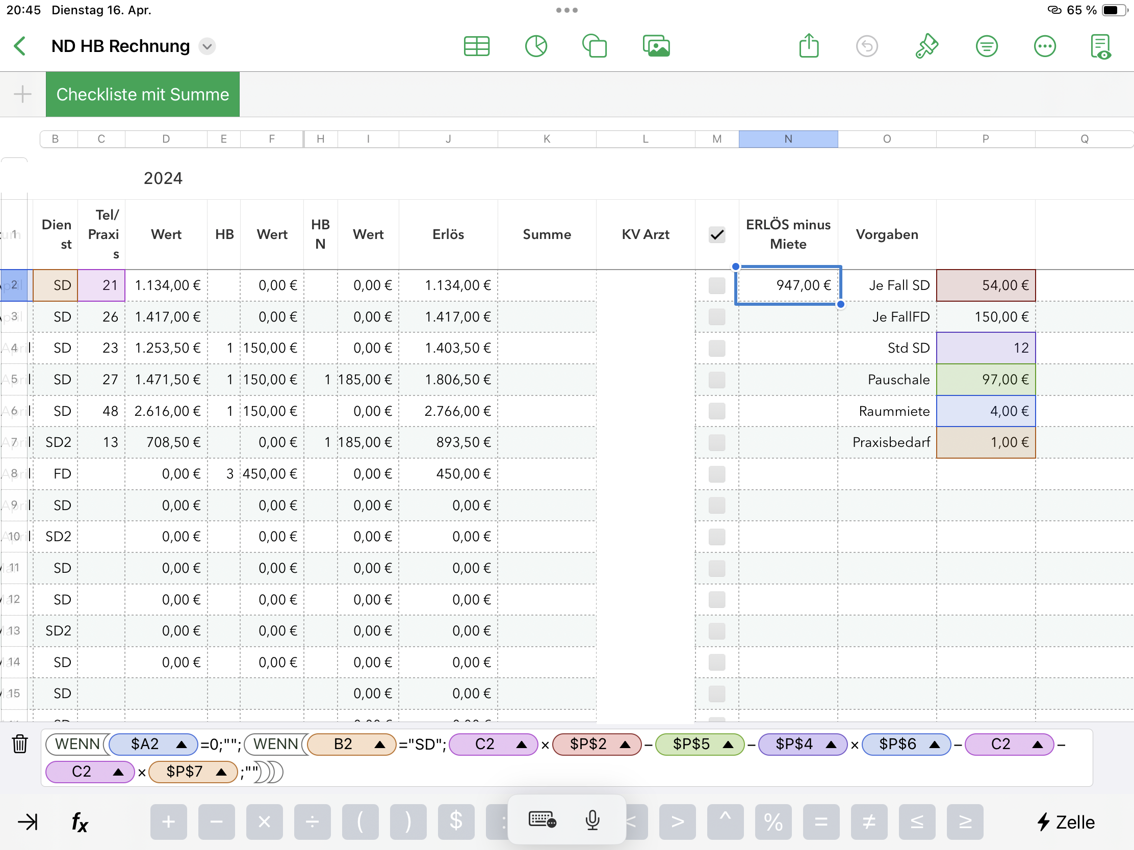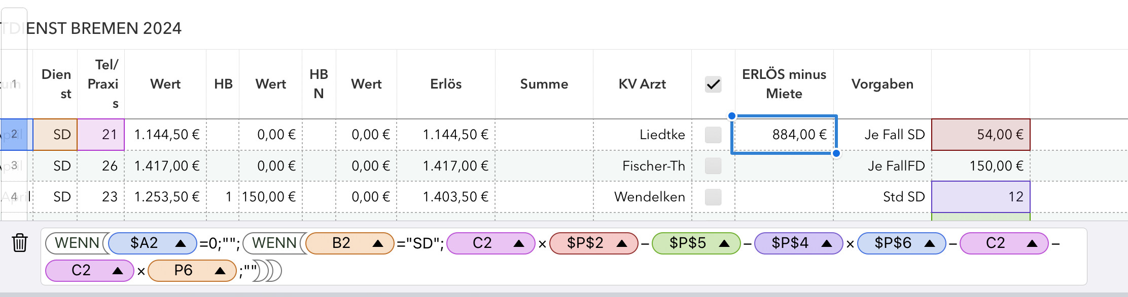 Derzeit beginnst du zu verstehen, was möglich wäre. Die Entwicklung soll für dich bei Eigenentwicklung ein Prozess sein, bei dem du dich in die Basics von Numbers einarbeiten kannst. Beginne mit den wichtigsten, häufigsten Berechnungen zuerst, verfeinern und ausbauen kann man später immer.