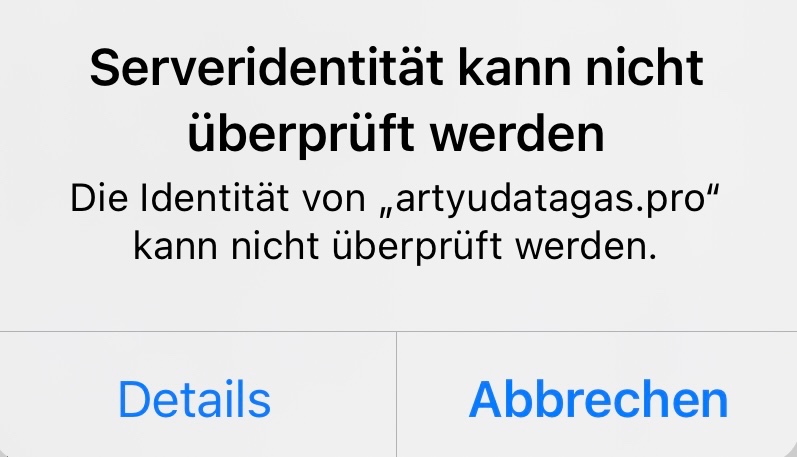 Die Identität von „artyudatagas.pro" kann nicht überprüft werden.“. Ich habe leider keine Ahnung wofür diese Meldung ist und bitte um Hilfe.