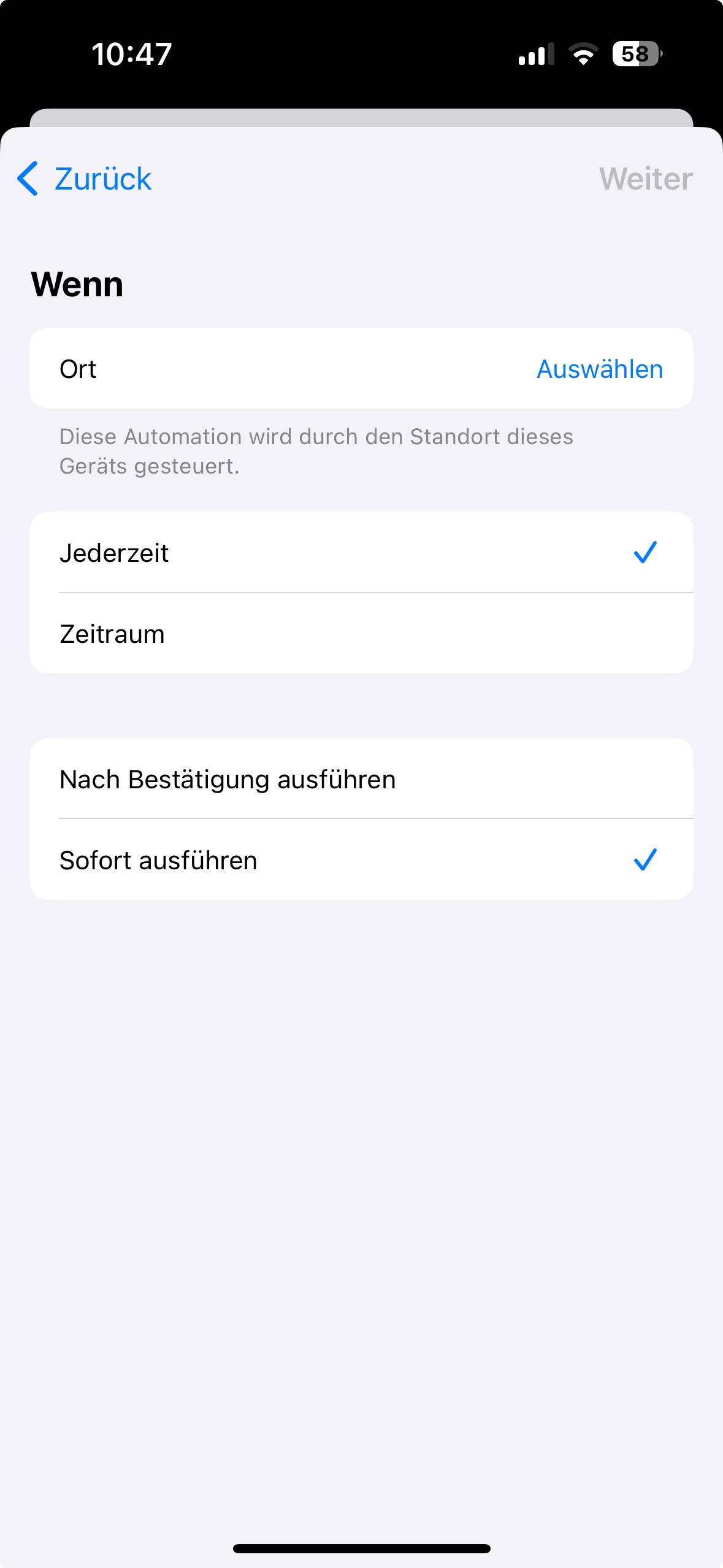 Befindest du dich bei der Arbeit immer am selben Ort ließe sich das ganze sogar standortbasierend automatisieren. Entsprechend musst du also zwei Automationen erstellen, welche als Bedingung entweder eine Uhrzeit oder einen Standort nutzen.