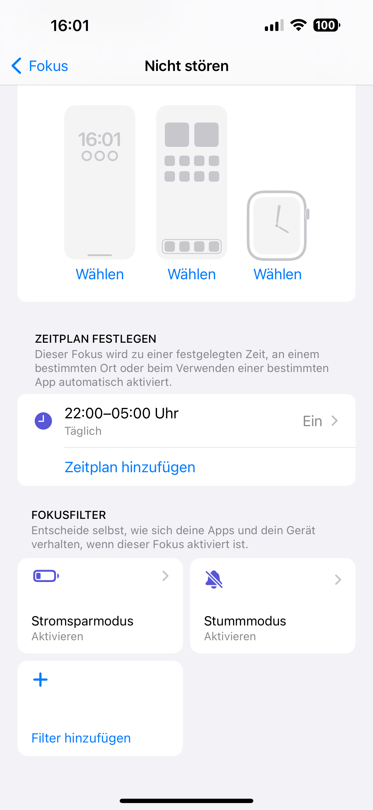 Zur Situation: Fokus "nicht stören" von 22Uhr bis 5Uhr des folge Tages. Dabei geht der Stromsparmodus automatisch immer an sowie um 5uhr eigentlich wieder aus.