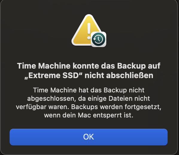 Time Maschine Backup schlägt fehl