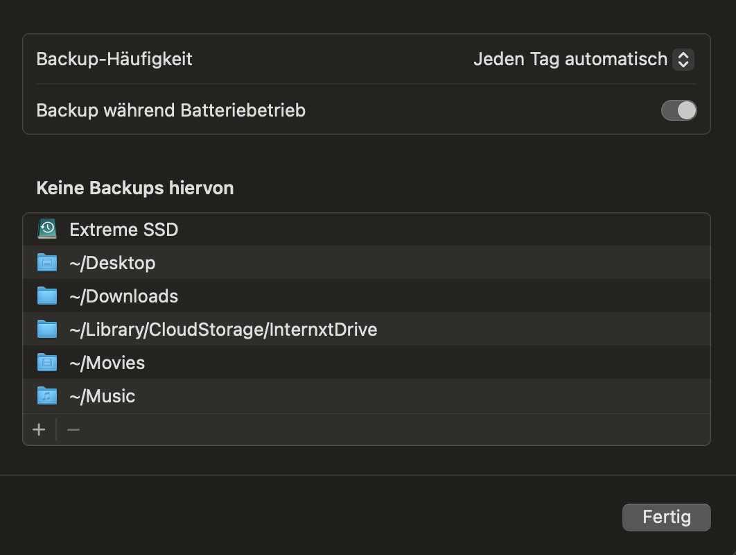 Täglich mache ich ein Time Maschine Backup auf meine externe SSD. Manchmal läuft das Back-up problemlos durch. Manchmal kommt es aber auch zu einem Fehler. Die externe SSD ist nicht voll.