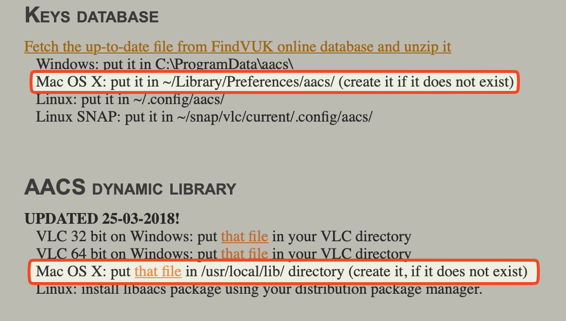 Die Nutzung von VLC laut der Anleitung mit "keydb.cfg" und "libaacs.dylib" funktioniert nicht.