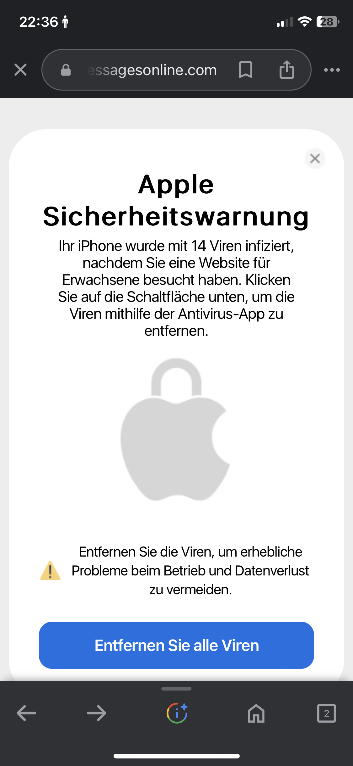 hast du das Apple Gerät unbeobachtet Dritten überlassen, selbst einen Jailbreak vorgenommen? Nein, dann bist du sicher und es gilt Nachfolgendes, wobei die angezeigte Meldung / diese Warnung nicht echt ist.