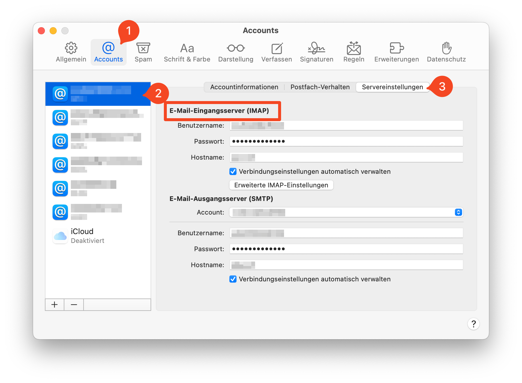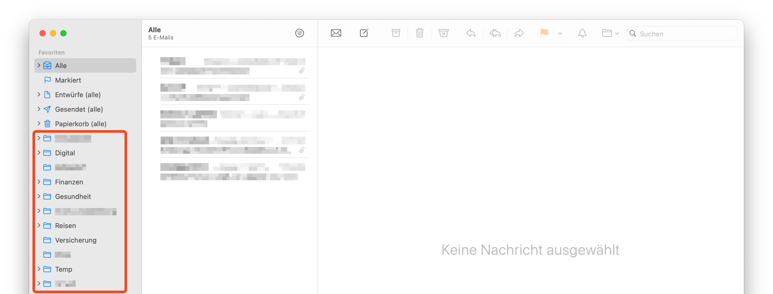 1. Wähle in der App „Mail“ auf dem Mac ein Postfach in der Mail-Seitenleiste aus.