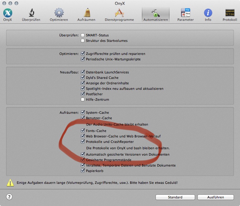 Mit dem Tool musst du vorsichtig umgehen, weil du damit sehr tief ins System eingreifen kannst. Am besten deaktivierst du ausser dieser einen alle anderen Optionen, bevor du sie ausführst. Eine gute Erläuterung findest du hier: https://www.sir-apfelot.de/onyx-apple-mac-21274/ (die Empfehlung von CleanMyMac bitte ignorieren).