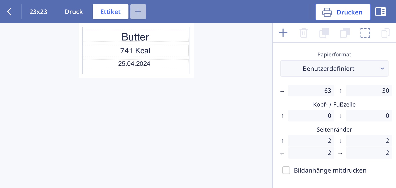 Habe das Ettiket auf 62mm gesetzt. Wird jetzt richtig 62x30 geschrieben, aber 62x63 gedruckt.