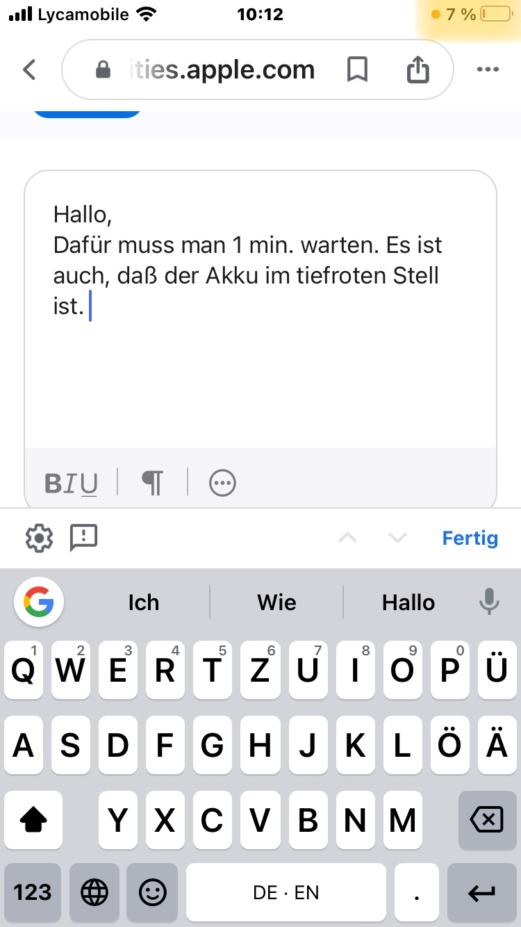 Bitte sorge in einem ersten Schritt für genügend Strom. Dein Akku ist aktuell im tiefroten Bereich. Das tut ihm nicht gut.