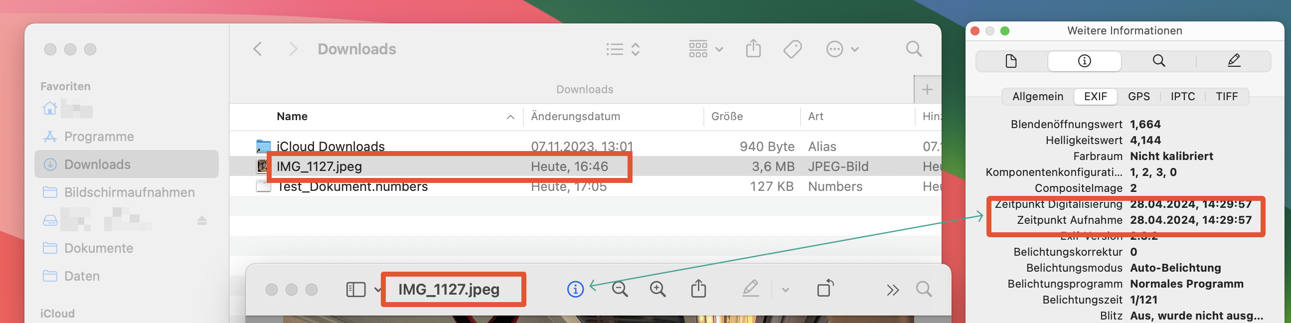 Fotos mit originalem Aufnahmedatum als JPEG-Datei aus Foto-App auf macOS exportieren