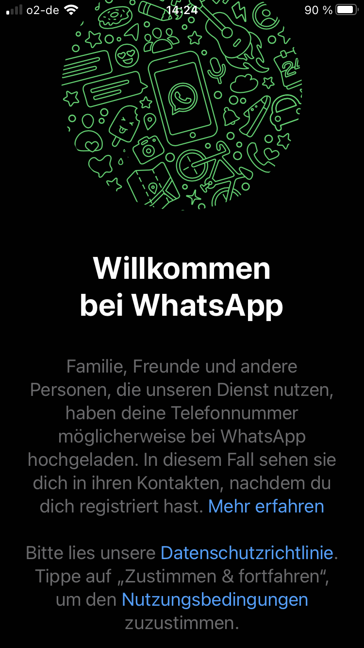 WhatsApp läßt sich nicht mehr auf meinem IPhone 8 iOS 16.7.7 registrieren. Nach der Installation der App folgt die Aufforderung, den Geschäftsbedingungen zuzustimmen. Es gibt aber dafür keinen Button/Link.