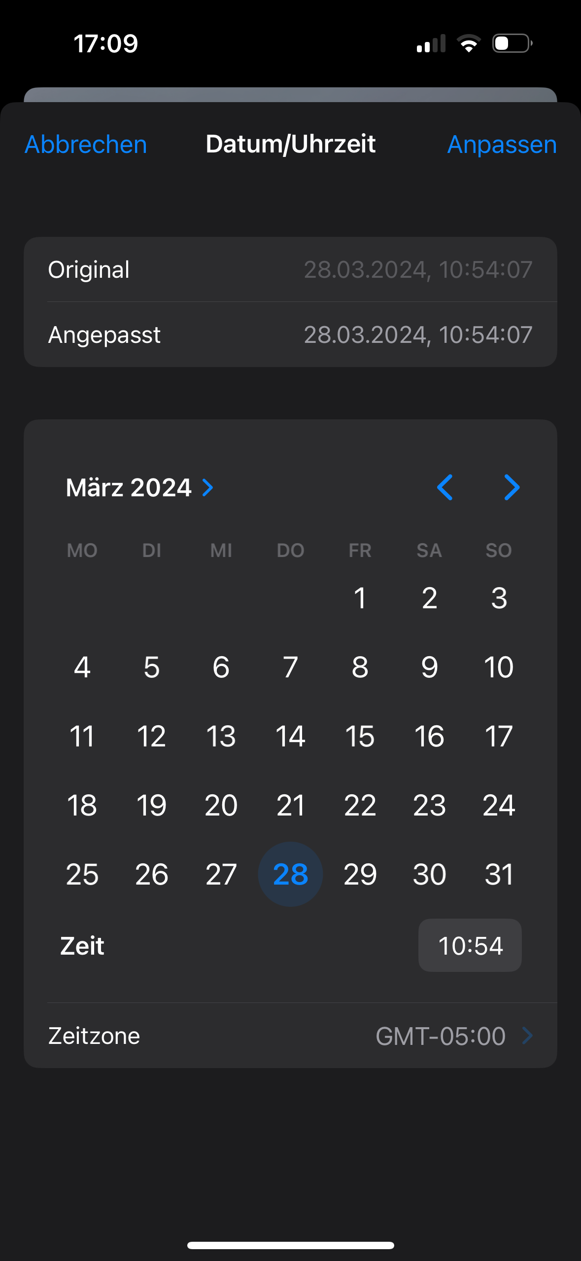 Uhrzeit vom Foto falsch, obwohl Zeitzone richtig ist
